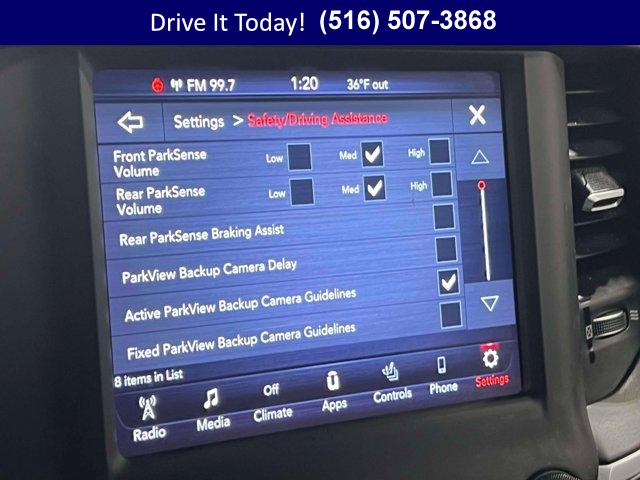 BRIGHT WHITE CLEARCOAT, PARKSENSE FRONT/REAR PARK ASSIST W/STOP, ENGINE CALIBRATION FLASH, RADIO: UCONNECT 4 W/8.4 DISPLAY, QUICK ORDER PACKAGE 27Z BIG HORN -inc: Engine: 5.7L V8 HEMI MDS VVT eTorque Transmission: 8-Speed Automatic (8HP75) Big Horn Badge, REAR WHEELHOUSE LINERS, WHEELS: 20 X 9 ALUMINUM CHROME CLAD (WRK), GVWR: 7 100 LBS, 115V AUXILIARY POWER OUTLET, ENGINE: 5.7L V8 HEMI MDS VVT ETORQUE -inc: Active Noise Control System Heavy Duty Engine Cooling GVWR: 7 100 lbs Dual Rear Exhaust w/Bright Tips Hemi Badge 23 Gallon Fuel Tank 18 Aluminum Spare Wheel, FRONT & REAR RUBBER FLOOR MATS, TRANSMISSION: 8-SPEED AUTOMATIC (8HP75), REMOTE START SYSTEM, 3.21 REAR AXLE RATIO (STD), TIRES: 275/55R20 ALL SEASON LRR, DIESEL GRAY/BLACK DELUXE CLOTH BUCKET SEATS -inc: Power 8-Way Driver Seat Bucket Seats Manual Adjust 4-Way Front Passenger Seat Full Length Floor Console Power 4-Way Driver Lumbar Adjust, ANTI-SPIN DIFFERENTIAL REAR AXLE, BIG HORN LEVEL 2 EQUIPMENT GROUP -inc: Radio: Uconnect 4 w/8.4 Display Rear Window Defroster ParkSense Front/Rear Park Assist w/Stop Rear View Auto Dim Mirror Power Adjustable Pedals Rear Power Sliding Window Rear Dome w/On/Off Switch Lamp Glove Box Lamp Power 4-Way Driver Lumbar Adjust 115V Auxiliary Rear Power Outlet Power 8-Way Driver Seat 2 USB Full Function/Charge Only Media Hub Heated Front Seats Heated Steering Wheel Foam Bottle Insert (Door Trim Panel) Class IV Receiver Hitch Dampened Tailgate Security Alarm Black Premium Power Mirrors Big Horn IP Badge Remote Start System SiriusXM Satellite Radio 400W Inverter Air Conditioning ATC w/Dual Zone Control 115V Auxiliary Power Outlet Universal Garage Door Opener 2nd Row In Floor Storage Bins Sun Visors w/Illuminated Vanity Mirrors