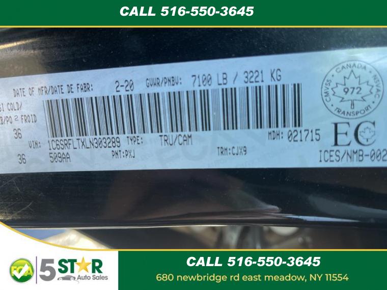 For more information on this 2020 RAM 1500, please call 5 Star Auto Sales at (516) 550-3645 or with the contact form on this page. This vehicle's vin number is 1C6SRFLTXLN303289 and is recorded as being in stock at 5 Star Auto Sales at 680 Newbridge Rd in East Meadow. See all cars from this dealership.