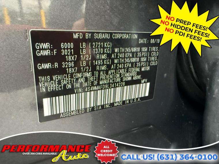 100% Clean Carfax! One Owner! 2020 Subaru Ascent Premium! Convenience Package! Reverse Automatic Braking! Power Rear Gate! Keyless Access! Popular Package #2! Heated Seats! Subaru StarLink 8 Inch Multimedia Screen! Runs and Drives Great! Come in for a Test Drive! REMEMBER THE PERFORMANCE AUTO DIFFERENCE - NO PREP FEES! NO HIDDEN FEES! With apologies to all our customers, past and future: All of our competitors advertise cars using price structures that get their cars seen online, while no one sees ours. And so, after 25 years of business, we have to experiment with THEIR system. Therefore our advertised prices on third-party advertisers reflect a $2500 down payment or equivalent trade. It is NOT a HIDDEN FEE: we are completely up front and honest about why we have to try it. Our website clearly states the pricing on every vehicle. Third Party advertisers like Carfax, Cargurus and Autotrader etc. reward this price structure with better placement and badges. We have been asking third party advertisers for many years to give us a level playing field. We always succeed on a level playing field. Our competitors have downpayments between $2500-$9000 or even a % of price, then add hidden fees or require financing through them. Some dealers will not list a downpayment in their ads and you only find out when you go to see the vehicle. With us, financing is not required, but if you prefer to, we work with many banks to get you the best terms. We are sorry for any inconvenience, but pure pricing placed our vehicles at the bottom of search lists. We had no choice but to try advertising their way so that you can at least see our inventory, and hopefully we will do business. We have been selling quality cars with great reviews for 25 years. Our reputation is our strongest quality. We will do everything we can to satisfy you. It is no accident that 30% of our customers are repeat business.