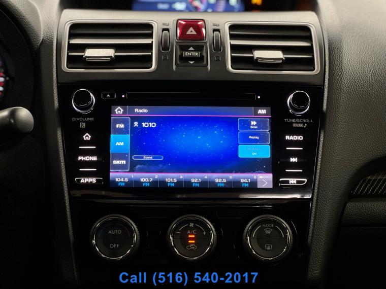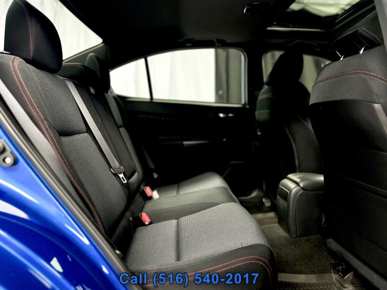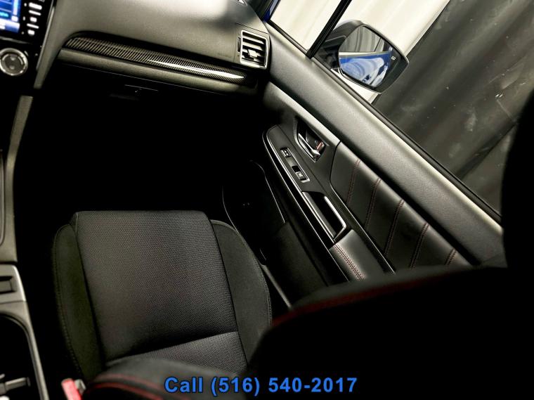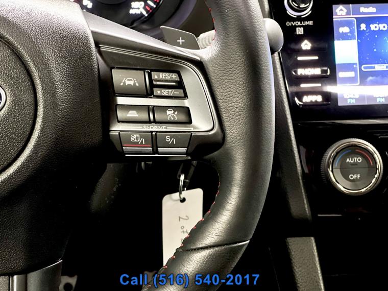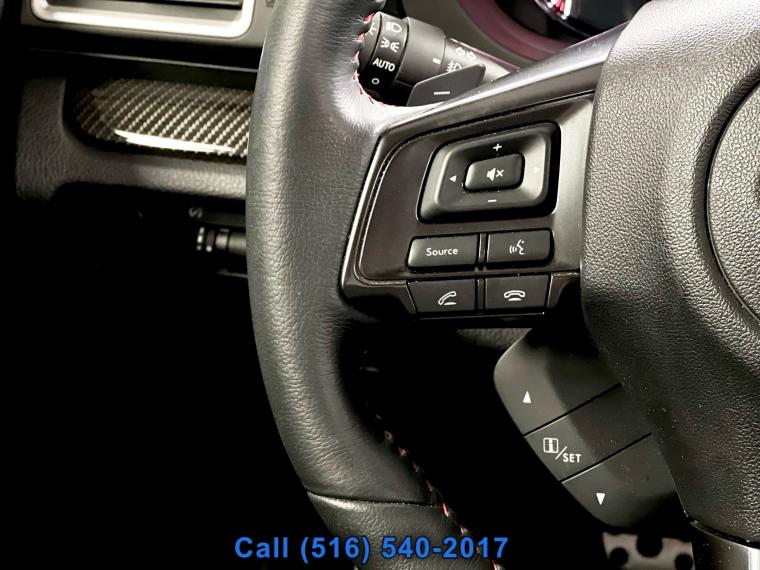 Sunroof/Moonroof, Heated Seats, Bluetooth, Backup Camera, Moonroof / Sunroof: anti-trapping one-touch open/close, power glass, sliding sunshade, tilt/slide, Driver seat: heated, Driver seat manual adjustments: height reclining, 6, Front headrests: adjustable 2, Front seat type: sport bucket, Passenger seat: heated, Passenger seat manual adjustments: reclining 4, Rear headrests: adjustable 3, Rear seat folding: split, Rear seat type: 60-40 split bench, Upholstery: cloth, Upholstery accents: contrast stitching, ABS: 4-wheel, Braking assist: , Cornering brake control: , Electronic brakeforce distribution: , Electronic parking brake: auto off, Front brake diameter: 12.4, Front brake type: ventilated disc, Power brakes: , Rear brake diameter: 11.8, Rear brake type: disc, Alternator: 130 amps, Battery: maintenance-free, Battery saver: , Daytime running lights: , Exterior entry lights: approach lamps, Front fog lights: , Headlights: auto delay off auto on/off, halogen, wiper activated, Automatic emergency braking: front, Camera system: rearview, Child safety door locks: , Child seat anchors: LATCH system, Crumple zones: front rear, Emergency interior trunk release: , Impact absorbing seats: dual front, Impact sensor: fuel cut-off, Lane deviation sensors: , Lane keeping assist: , Pre-collision warning system: audible warning visual warning, Rearview monitor: in dash, Safety brake pedal system: , Airbag deactivation: occupant sensing passenger, Front airbags: dual, Knee airbags: driver, Side airbags: front, Side curtain airbags: front rear, Side mirror adjustments: manual folding power, Side mirrors: heated, Front wipers: variable intermittent, Heated windshield wiper rests: , Power windows: safety reverse, Window defogger: rear, Anti-theft system: alarm vehicle immobilizer, Power door locks: anti-lockout, Steering ratio: 14.4, Turns lock-to-lock: 2.7, Emergency locking retractors: driver, Front seatbelts: 3-point, Rear seatbelts: 3-point, Seatbelt force limiters: front, Seatbelt pretensioners: front, Seatbelt warning sensor: front, 4WD type: full time, Axle ratio: 3.90, Drive mode selector: , Front shock type: gas, Front spring type: coil, Front stabilizer bar: , Front struts: inverted, Front suspension classification: independent, Front suspension type: lower control arms, Rear shock type: gas, Rear spring type: coil, Rear stabilizer bar: , Rear suspension classification: independent, Rear suspension type: double wishbone, Tuned suspension: sport, Driver assistance app: roadside assistance, Electronic messaging assistance: voice operated with read function, Satellite communications: voice guided directions, Smart device app compatibility: MySubaru, Smart device app function: engine start horn/light operation, lock operation, maintenance scheduling, maintenance status, vehicle location, Wireless data link: Bluetooth, Antenna type: diversity mast, Auxiliary audio input: Bluetooth USB, iPod/iPhone, jack, In-Dash CD: MP3 Playback single disc, Internet radio app: AHA Pandora, Stitcher, iHeartRadio, Radio: AM/FM HD radio, touch screen display, voice operated, Radio data system: , Satellite radio: SiriusXM, Speed sensitive volume control: , Total speakers: 6, Spare tire mount location: inside, Spare tire size: temporary, Spare wheel type: steel, Tire Pressure Monitoring System: , Tire type: summer performance, Wheels: aluminum alloy, Clock: , Digital odometer: , External temperature display: , Fuel economy display: MPG range, Gauge: tachometer, Head-up display: , Instrument cluster screen size: 3.5 in., Multi-function display: , Trip odometer: , Warnings and reminders: coolant temperature warning lamp failure, low fuel level, low oil pressure, low washer fluid, maintenance due, Air filtration: , Front air conditioning: automatic climate control, Front air conditioning zones: single, Armrests: rear center with cupholders rear folding, Dash trim: simulated carbon fiber, Door trim: leatherette, Floor mat material: carpet, Floor material: carpet, Floor mats: front rear, Foot pedal trim: aluminum alloy, Interior accents: chrome, Shift knob trim: leather, Steering wheel trim: leather, Bumper detail: front underguard rear underguard, Door handle color: body-color, Exhaust: quad tip, Exhaust tip color: stainless steel, Front bumper color: body-color, Grille color: black, Ground effects/lower spoilers: , Headlight bezel color: chrome, Hood scoop: , Mirror color: body-color, Rear bumper color: body-color, Rear spoiler: lip, Rear spoiler color: body-color, Rocker panel color: body-color, Window trim: black, Adaptive cruise control: , Adaptive stop and go cruise control: semi-automatic, Ambient lighting: , Assist handle: front rear, Cargo area light: , Center console: front console with armrest and storage illuminated, organizer tray, Courtesy lights: door, Cupholders: front rear, Footwell lights: , Multi-function remote: keyless entry panic alarm, trunk release, One-touch windows: 2, Overhead console: front, Power outlet(s): two 12V front, Power steering: variable/speed-proportional, Power windows: lockout button, Reading lights: front, Rearview mirror: manual day/night, Steering wheel: tilt and telescopic, Steering wheel mounted controls: audio cruise control, multi-function, paddle shifter, phone, voice control, Storage: door pockets front seatback, in floor, Vanity mirrors: dual illuminating, Connected in-car apps: Google POIs Google search, SiriusXM Travel Link, Yelp, Infotainment: STARLINK, Infotainment screen size: 7 in., Smartphone integration: Android Auto Apple CarPlay, Hill holder control: , Stability control: , Traction control:
