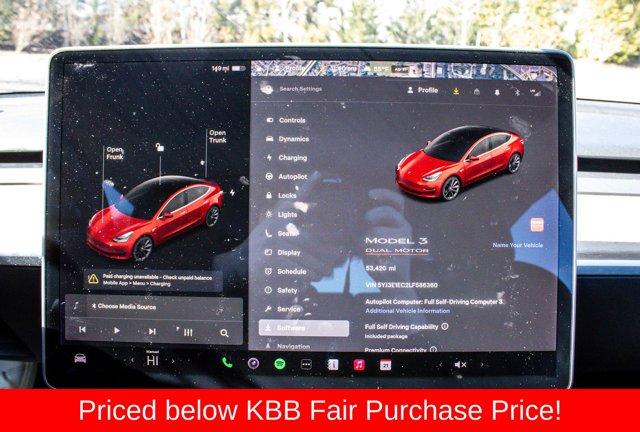 4-Wheel Disc Brakes, Automatic temperature control, Brake assist, Exterior Parking Camera Rear, Four wheel independent suspension, Front Bucket Seats, Fully automatic headlights, Memory seat, Navigation System, Power driver seat, Premium Audio System, Security system, Steering wheel mounted A/C controls. Priced below KBB Fair Purchase Price!2020 Tesla Model 3 Performance Red Multi-Coat Performance AWD 1-Speed Automatic Electric MotorSpecial pricing ad/promotion is available to customers who reference such pricing and present the ad at the time of sale otherwise store list price applies. Buyer is responsible to verify options/packages. Any error voids the ad. Certified Pre-Owned program available. Same-day delivery In-stock units only. Dealer-installed accessories are extra. Dealer is not responsible for typographical errors. Every vehicle in inventory is equipped with LoJack at an additional cost. The special price expires at the midnight of the publication date. For return & exchange policy visit the website for details. All Prices will be honored as cash prices. Prices do not include the following fees: Doc Fee, tax, tags, DMV fees. Pre-installed LoJack, and Pre-Certification (vary between vehicles) Please visit or call the dealership for complete details.