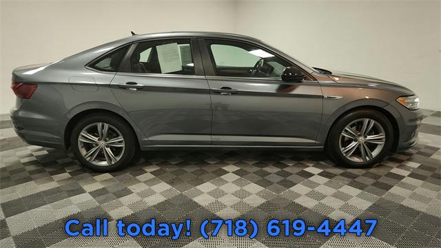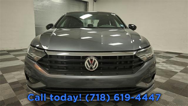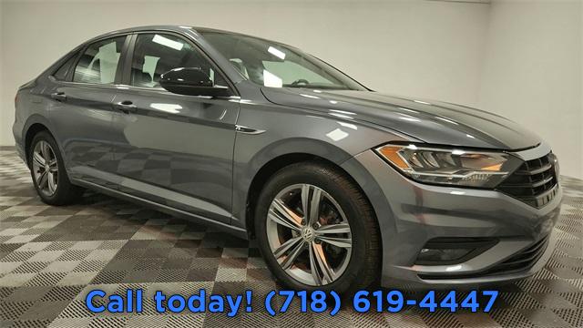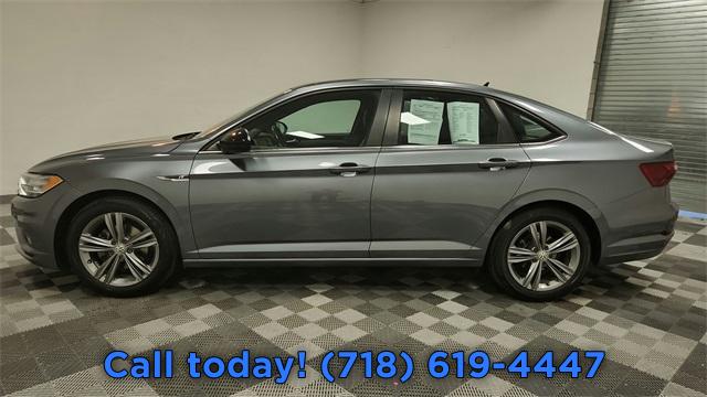 2020 Volkswagen Jetta R-Line Storm Gray/Black w/Perforated V-Tex Leatherette Seat Trim, Exterior Parking Camera Rear, Fully automatic headlights, Radio: Composition Color w/6.5" Touchscreen, Remote keyless entry, Steering wheel mounted audio controls.