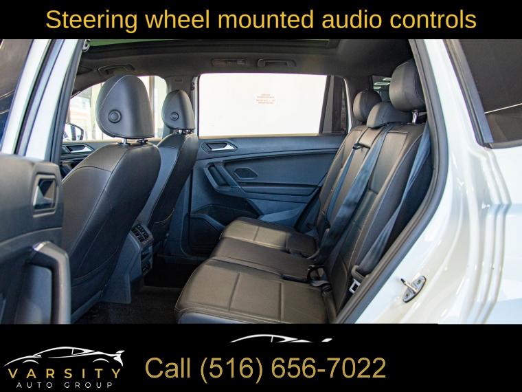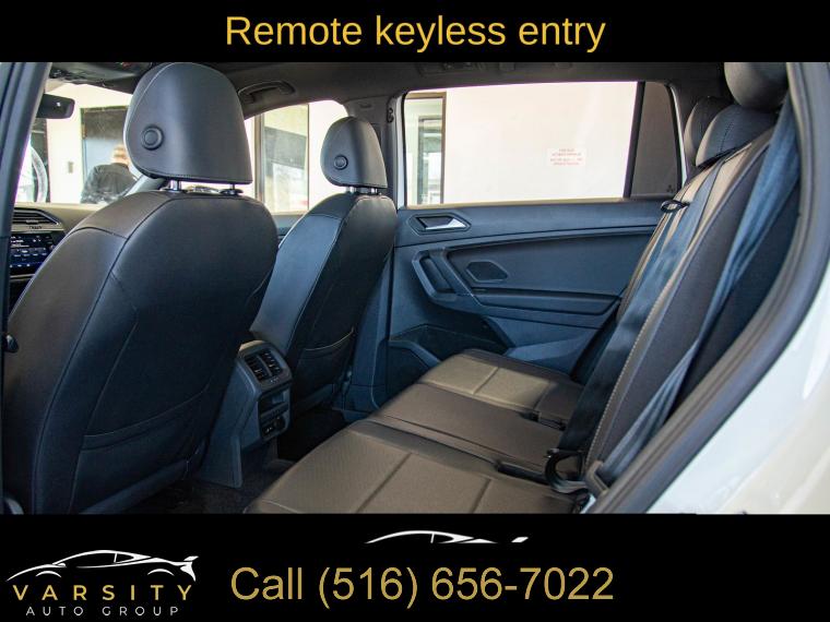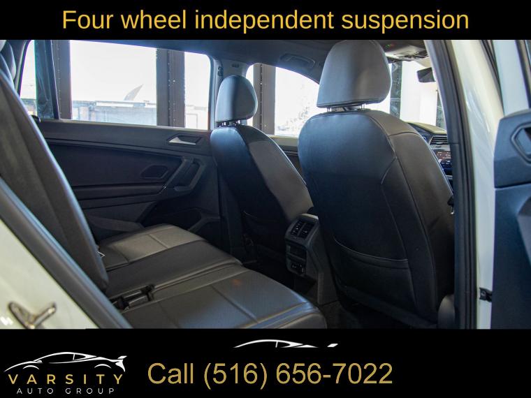 6 Speakers, AM/FM radio: SiriusXM, Radio data system, Radio: Composition Media AM/FM/HD, Air Conditioning, Automatic temperature control, Front dual zone A/C, Rear window defroster, Power driver seat, Power steering, Power windows, Remote keyless entry, Steering wheel mounted audio controls, 4-Wheel Independent Suspension, Four wheel independent suspension, Speed-sensing steering, Traction control, 4-Wheel Disc Brakes, ABS brakes, Dual front impact airbags, Dual front side impact airbags, Emergency communication system: VW Car-Net services (capabilities require enrollment or subscription), Front anti-roll bar, Low tire pressure warning, Occupant sensing airbag, Overhead airbag, Rear anti-roll bar, Brake assist, Electronic Stability Control, Forward collision: FCW w/Autonomous Emergency Braking mitigation, Exterior Parking Camera Rear, Delay-off headlights, Fully automatic headlights, Panic alarm, Security system, Speed control, Bumpers: body-color, Heated door mirrors, Power door mirrors, Roof rack: rails only, Spoiler, Turn signal indicator mirrors, Compass, Driver door bin, Driver vanity mirror, Front reading lights, Illuminated entry, Leather Shift Knob, Outside temperature display, Overhead console, Passenger vanity mirror, Rear reading lights, Rear seat center armrest, Tachometer, Telescoping steering wheel, Tilt steering wheel, Trip computer, VW App-Connect (w/Apple CarPlay, Android Auto & MirrorLink), Front Bucket Seats, Front Center Armrest, Heated Front Comfort Seats, Heated front seats, Perforated V-Tex Leatherette Seating Surfaces, Split folding rear seat, Passenger door bin, Alloy wheels, Wheels: 17" Multi-Spoke 2-Tone Alloy, Rear window wiper, Variably intermittent wipers, 3.33 Axle Ratio, 2020 Volkswagen Tiguan 2.0T SE 4Motion