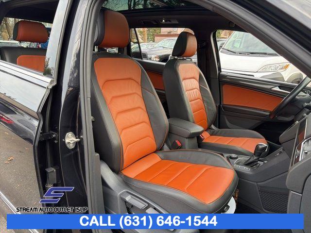 Navigation system: VW Car-Net Guide & Inform, 8 Speakers, AM/FM radio: SiriusXM, Radio data system, Radio: Discover Media AM/FM/HD, Air Conditioning, Automatic temperature control, Front dual zone A/C, Rear window defroster, Memory seat, Power driver seat, Power steering, Power windows, Remote keyless entry, Steering wheel mounted audio controls, 4-Wheel Independent Suspension, Four wheel independent suspension, Speed-sensing steering, Traction control, 4-Wheel Disc Brakes, ABS brakes, Dual front impact airbags, Dual front side impact airbags, Emergency communication system: VW Car-Net services (capabilities require enrollment or subscription), Front anti-roll bar, Low tire pressure warning, Occupant sensing airbag, Overhead airbag, Rear anti-roll bar, Power moonroof, Bumperdillo Protection Plate for Rear Bumper, Power Liftgate, Brake assist, Electronic Stability Control, Forward collision: FCW w/Autonomous Emergency Braking mitigation, Auto High-beam Headlights, Delay-off headlights, Front fog lights, Fully automatic headlights, First Aid Kit, Panic alarm, Security system, Speed control, Bumpers: body-color, Heated door mirrors, Power door mirrors, Roof rack: rails only, Spoiler, Turn signal indicator mirrors, 2-Row Rubber Monster Mats w/Logo Kit (Set of 4), Auto-dimming Rear-View mirror, Compass, Driver door bin, Driver vanity mirror, Frameless Auto-Dimming Rearview Mirror, Front reading lights, Heated Front Comfort Sport Seats, Heated steering wheel, Heavy Duty Trunk Liner w/VW CarGo Blocks, Illuminated entry, Leather Shift Knob, Outside temperature display, Overhead console, Passenger vanity mirror, Rear reading lights, Rear seat center armrest, Roadside Assistance Kit, Tachometer, Telescoping steering wheel, Tilt steering wheel, Trip computer, VW App-Connect (w/Apple CarPlay, Android Auto & MirrorLink), Front Bucket Seats, Front Center Armrest, Heated front seats, Split folding rear seat, Vienna Leather Seating Surfaces, Cargo Area Retractable Privacy Cover, Passenger door bin, Alloy wheels, Wheels: 20" 2-Tone Machined Dark Graphite Alloy, Rain sensing wipers, Rear window wiper, Variably intermittent wipers, 3.33 Axle Ratio