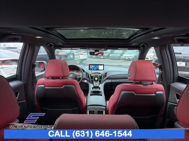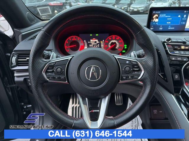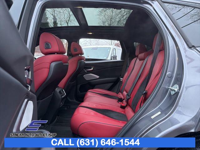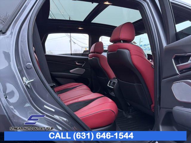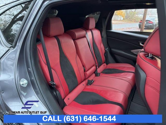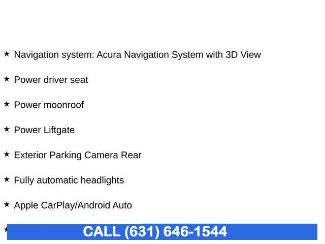 Navigation system: Acura Navigation System with 3D View, 16 Speakers, AM/FM radio: SiriusXM, Premium audio system: Acura/ELS Studio 3D, Radio data system, Radio: Acura ELS Studio 3D Premium Audio System, Air Conditioning, Automatic temperature control, Front dual zone A/C, Rear window defroster, Memory seat, Power driver seat, Power steering, Power windows, Remote keyless entry, Steering wheel mounted audio controls, Four wheel independent suspension, Speed-sensing steering, Traction control, 4-Wheel Disc Brakes, ABS brakes, Dual front impact airbags, Dual front side impact airbags, Emergency communication system: AcuraLink, Front anti-roll bar, Knee airbag, Low tire pressure warning, Occupant sensing airbag, Overhead airbag, Rear anti-roll bar, Power moonroof, Power Liftgate, Brake assist, Electronic Stability Control, Lane departure: Lane Keeping Assist System (LKAS) active, Exterior Parking Camera Rear, Auto High-beam Headlights, Delay-off headlights, Front fog lights, Fully automatic headlights, Panic alarm, Security system, Speed control, Bumpers: body-color, Heated door mirrors, Power door mirrors, Spoiler, Turn signal indicator mirrors, Apple CarPlay/Android Auto, Auto-dimming Rear-View mirror, Compass, Driver door bin, Driver vanity mirror, Front reading lights, Garage door transmitter: HomeLink, Heated & Ventilated Front Sport A-Spec Seats, Illuminated entry, Outside temperature display, Overhead console, Passenger vanity mirror, Rear reading lights, Rear seat center armrest, Tachometer, Telescoping steering wheel, Tilt steering wheel, Trip computer, Front Bucket Seats, Front Center Armrest, Heated front seats, Perforated Milano Premium Leather-Trimmed Interior, Power passenger seat, Split folding rear seat, Ventilated front seats, Passenger door bin, Alloy wheels, Wheels: 20" x 8" Shark Gray Split 5-Spoke, Rear window wiper, Variably intermittent wipers, 4.17 Axle Ratio