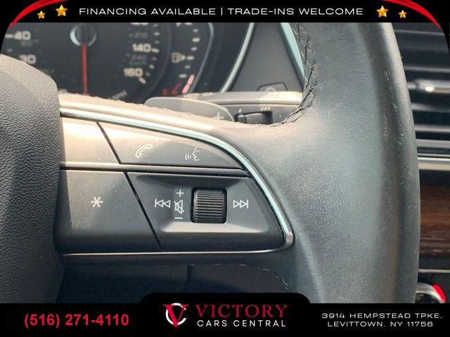 10 Speakers, AM/FM radio, Radio data system, Radio: Audi Sound System, Air Conditioning, Automatic temperature control, Front dual zone A/C, Rear air conditioning, Rear window defroster, Power driver seat, Power steering, Power windows, Remote keyless entry, Steering wheel mounted audio controls, Four wheel independent suspension, Speed-sensing steering, Traction control, 4-Wheel Disc Brakes, ABS brakes, Dual front impact airbags, Dual front side impact airbags, Emergency communication system: Audi connect CARE, Front anti-roll bar, Low tire pressure warning, Occupant sensing airbag, Overhead airbag, Rear anti-roll bar, Power Liftgate, Brake assist, Electronic Stability Control, Exterior Parking Camera Rear, Auto High-beam Headlights, Delay-off headlights, Front fog lights, Rear fog lights, Panic alarm, Security system, Speed control, Bumpers: body-color, Heated door mirrors, Power door mirrors, Roof rack, Spoiler, Turn signal indicator mirrors, Auto-dimming Rear-View mirror, Compass, Driver door bin, Driver vanity mirror, Front reading lights, Garage door transmitter: HomeLink, Genuine wood console insert, Genuine wood dashboard insert, Genuine wood door panel insert, Heated 8-Way Power Front Bucket Seats, Illuminated entry, Leather Shift Knob, Outside temperature display, Overhead console, Passenger vanity mirror, Rear reading lights, Rear seat center armrest, Tachometer, Telescoping steering wheel, Tilt steering wheel, Trip computer, Front Bucket Seats, Front Center Armrest, Heated front seats, Leather Seating Surfaces, Power passenger seat, Split folding rear seat, Passenger door bin, Alloy wheels, Wheels: 18" 5-Arm-Star Design, Rain sensing wipers, Rear window wiper, Speed-Sensitive Wipers, Variably intermittent wipers, 5.302 Axle Ratio