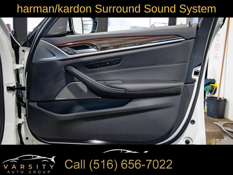 Navigation System, Connected Package Pro, Driving Assistance Plus Package, Executive Package, Luxury Seating Package, M Sport Package, Parking Assistance Package, 12 Speakers, AM/FM radio: SiriusXM with 360L, harman/kardon Surround Sound System, Hi-Fi Sound System, Radio data system, Radio: AM/FM Audio System, SiriusXM w/360L, Air Conditioning, Automatic temperature control, Front dual zone A/C, Rear window defroster, Head-Up Display, Lumbar Support, Memory seat, Power driver seat, Power steering, Power windows, Remote Engine Start, Remote keyless entry, Steering wheel memory, Steering wheel mounted audio controls, Four wheel independent suspension, M Sport Suspension, Speed-sensing steering, Traction control, 4-Wheel Disc Brakes, ABS brakes, Dual front impact airbags, Dual front side impact airbags, Emergency communication system: BMW Assist eCall, Front anti-roll bar, Low tire pressure warning, Occupant sensing airbag, Overhead airbag, Rear anti-roll bar, Variable Sport Steering, Power moonroof, Power Tailgate, Brake assist, Electronic Stability Control, Exterior Parking Camera Rear, Rear-View Camera, Auto High-beam Headlights, Delay-off headlights, Fully automatic headlights, Panic alarm, Security system, Active Driving Assistant Pro, Extended Traffic Jam Assistant, Speed control, Aerodynamic Kit, Auto-dimming door mirrors, Bumpers: body-color, Heated door mirrors, Power door mirrors, Shadowline Exterior Trim, Turn signal indicator mirrors, Without Lines Designation Outside, Active Park Distance Control, Apple CarPlay & Android Auto Compatibility, Auto tilt-away steering wheel, Auto-dimming Rear-View mirror, BMW Assist eCall, BMW TeleServices, Ceramic Controls, ConnectedDrive Services, Drive Recorder, Driver door bin, Driver vanity mirror, Enhanced USB & Bluetooth, Enhanced USB & Bluetooth (ZEB), Front reading lights, Garage door transmitter, Genuine wood console insert, Genuine wood dashboard insert, Genuine wood door panel insert, Gesture Control, Illuminated entry, Leather Shift Knob, Leather steering wheel, Live Cockpit Pro w/Navi, M Sport Pkg, M Steering Wheel, Outside temperature display, Parking Assistant Plus, Passenger vanity mirror, Rear reading lights, Rear seat center armrest, Sport steering wheel, Surround View w/3D View, Tachometer, Telescoping steering wheel, Tilt steering wheel, Trip computer, WiFi Hotspot, Wireless Charging, Front Bucket Seats, Front Center Armrest, Front Ventilated Seats, Heated Front Seats, Multi-Contour Seats, Nappa Leather Upholstery, Perforated Sensatec Upholstery, Power Front Seats, Power passenger seat, Split folding rear seat, Sport Seats, Passenger door bin, Alloy wheels, Wheels: 19" x 8" M Y-Spoke Bicolor Jet Black, Power Rear Sunshade, Rain sensing wipers, Speed-Sensitive Wipers, Variably intermittent wipers, 2021 BMW 5 Series 540i M Sport, Alpine White, Black w/Nappa Leather Upholstery, Clean CARFAX