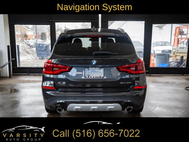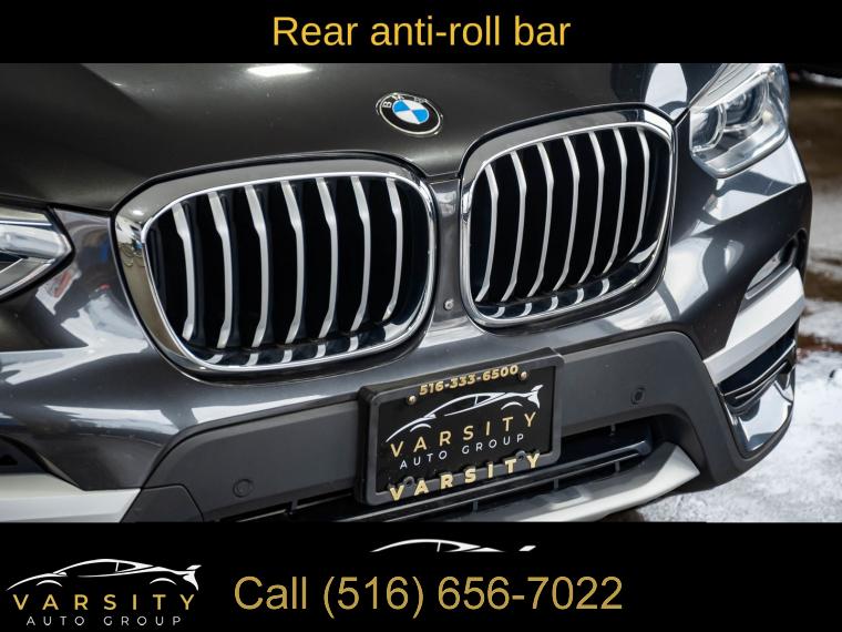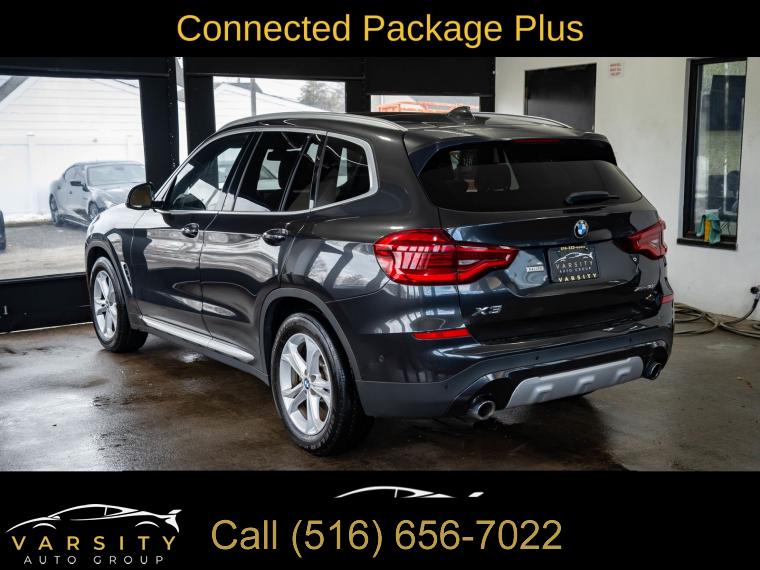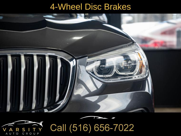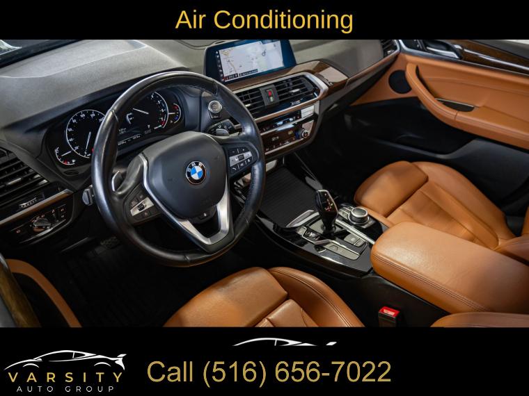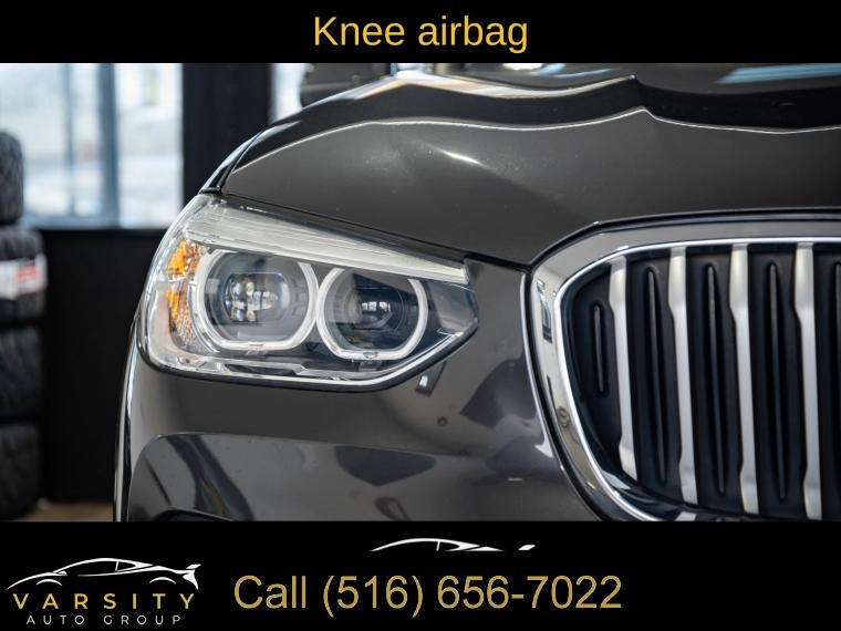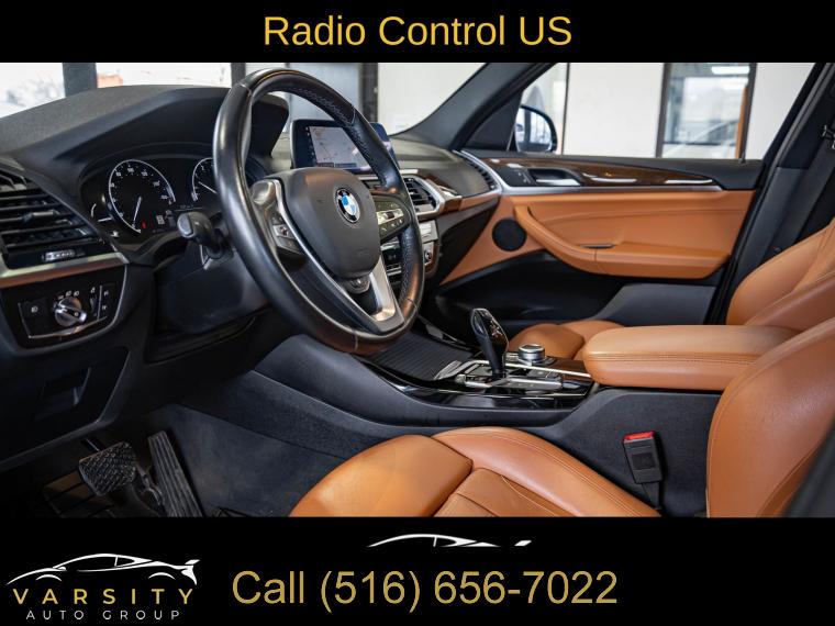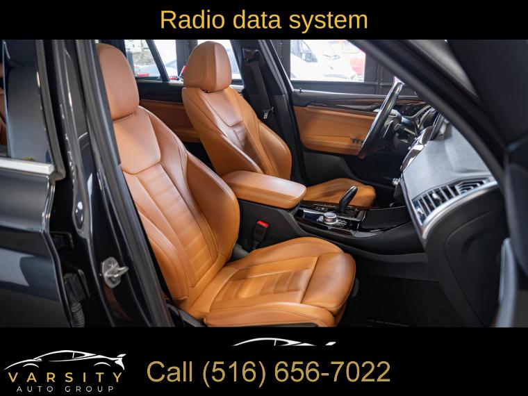 Navigation, Navigation System, Connected Package Plus, Convenience Package, Parking Assistance Package, 12 Speakers, AM/FM radio: SiriusXM, Hi-Fi Sound System, Radio Control US, Radio data system, Radio: AM/FM Stereo w/HD, SiriusXM Satellite Radio, Air Conditioning, Automatic temperature control, Front dual zone A/C, Rear air conditioning, Rear window defroster, Comfort Access Keyless Entry, Lumbar Support, Memory seat, Power driver seat, Power steering, Power windows, Remote keyless entry, Steering wheel mounted audio controls, Four wheel independent suspension, Speed-sensing steering, Traction control, 4-Wheel Disc Brakes, ABS brakes, Dual front impact airbags, Dual front side impact airbags, Emergency communication system: BMW Assist eCall, Front anti-roll bar, Knee airbag, Low tire pressure warning, Occupant sensing airbag, Overhead airbag, Rear anti-roll bar, Panoramic Moonroof, Power Liftgate, Brake assist, Electronic Stability Control, Exterior Parking Camera Rear, Rear-View Camera, Delay-off headlights, Front fog lights, Fully automatic headlights, Panic alarm, Security system, Speed control, Auto-dimming door mirrors, Bumpers: body-color, Heated door mirrors, Parking Assistant Plus, Power door mirrors, Roof rack: rails only, Spoiler, Turn signal indicator mirrors, Active Park Distance Control, Ambient Lighting, Apple CarPlay Compatibility, Auto-dimming Rear-View mirror, BMW Assist eCall, BMW TeleServices, ConnectedDrive Services, Driver door bin, Driver vanity mirror, Front reading lights, Garage door transmitter, Genuine wood dashboard insert, Genuine wood door panel insert, Heated Steering Wheel, Illuminated entry, Outside temperature display, Passenger vanity mirror, Rear reading lights, Rear seat center armrest, Sport steering wheel, Surround View w/3D View, Tachometer, Telescoping steering wheel, Tilt steering wheel, Trip computer, WiFi Hotspot, Front Bucket Seats, Front Center Armrest, Heated Front Seats, Power Front Seats, Power passenger seat, SensaTec Upholstery, Split folding rear seat, Sport Bucket Seats, Passenger door bin, Alloy wheels, Wheels: 18" x 7.0" Y-Spoke (Style 688), Rain sensing wipers, Rear window wiper, Speed-Sensitive Wipers, Variably intermittent wipers, 3.385 Axle Ratio, 2021 BMW X3 xDrive30i, Dark Graphite Metallic