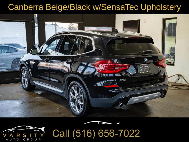 2021 BMW X3 xDrive30i, Jet Black, Canberra Beige/Black w/SensaTec Upholstery, Convenience Package, Connected Package Plus, Panoramic Moonroof., 8-Speed Automatic Sport, 12 Speakers, 3.385 Axle Ratio, 4-Wheel Disc Brakes, ABS brakes, Air Conditioning, Alloy wheels, AM/FM radio: SiriusXM, Apple CarPlay Compatibility, Auto-dimming door mirrors, Auto-dimming Rear-View mirror, Automatic temperature control, BMW Assist eCall, BMW TeleServices, Brake assist, Bumpers: body-color, Comfort Access Keyless Entry, Connected Package Plus, ConnectedDrive Services, Convenience Package, Delay-off headlights, Driver door bin, Driver vanity mirror, Dual front impact airbags, Dual front side impact airbags, Electronic Stability Control, Emergency communication system: BMW Assist eCall, Exterior Parking Camera Rear, Four wheel independent suspension, Front anti-roll bar, Front Bucket Seats, Front Center Armrest, Front dual zone A/C, Front fog lights, Front reading lights, Fully automatic headlights, Garage door transmitter, Genuine wood dashboard insert, Genuine wood door panel insert, Heated door mirrors, Heated Front Seats, Heated Steering Wheel, Hi-Fi Sound System, Illuminated entry, Knee airbag, Low tire pressure warning, Lumbar Support, M Sport Package (337), Memory seat, Navigation, Navigation System, Occupant sensing airbag, Outside temperature display, Overhead airbag, Panic alarm, Panoramic Moonroof, Passenger door bin, Passenger vanity mirror, Power door mirrors, Power driver seat, Power Front Seats, Power Liftgate, Power passenger seat, Power steering, Power windows, Radio Control US, Radio data system, Radio: AM/FM Stereo w/HD, Rain sensing wipers, Rear air conditioning, Rear anti-roll bar, Rear reading lights, Rear seat center armrest, Rear window defroster, Rear window wiper, Remote keyless entry, Roof rack: rails only, Security system, SensaTec Upholstery, SiriusXM Satellite Radio, Speed control, Speed-sensing steering, Speed-Sensitive Wipers, Split folding rear seat, Spoiler, Sport Bucket Seats, Sport steering wheel, Steering wheel mounted audio controls, Tachometer, Telescoping steering wheel, Tilt steering wheel, Traction control, Trip computer, Turn signal indicator mirrors, Variably intermittent wipers, Wheels: 18" x 7.0" Y-Spoke (Style 688), Wheels: 19" x 7.5" Y-Spoke (Style 693), WiFi Hotspot. Jet Black 2021 BMW X3 xDrive30i AWD 8-Speed Automatic Sport 2.0L I4 TwinPower Turbo 23/29 City/Highway MPG