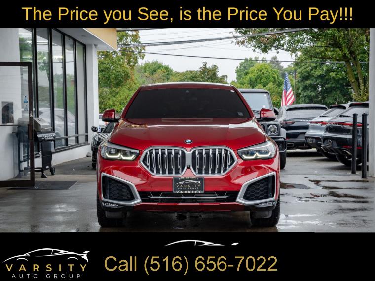 The Price you See, is the Price You Pay!!!, Clean CARFAX, 1 Owner, Low Miles, Front Messaging Seats, Fineline Stripe Brown High Gloss Wood Trim, Black Vernasca Leather Upholstery, Flamenco Red Metallic, Black Leather, 3.39 Axle Ratio, 4-Wheel Disc Brakes, 4-Zone Automatic Climate Control, 9 Speakers, ABS brakes, Active Park Distance Control, Air Conditioning, Alloy wheels, AM/FM radio: SiriusXM with 360L, AM/FM Stereo, Apple CarPlay & Android Auto Compatibility, Audio memory, Auto High-beam Headlights, Auto tilt-away steering wheel, Auto-dimming door mirrors, Auto-dimming Rear-View mirror, Automatic temperature control, BMW Assist eCall, BMW TeleServices, Brake assist, Bumpers: body-color, Compass, Connected Package Pro, ConnectedDrive Services, Convenience Package (DISC), Delay-off headlights, Drive Recorder, Driver door bin, Driver vanity mirror, Dual front impact airbags, Dual front side impact airbags, Electronic Stability Control, Emergency communication system: BMW Assist eCall, Enhanced USB & Bluetooth, Exterior Parking Camera Rear, Four wheel independent suspension, Front anti-roll bar, Front Bucket Seats, Front Center Armrest, Front dual zone A/C, Front fog lights, Front Massaging Seats, Front Massaging Seats (Discontinued), Front reading lights, Front Ventilated Seats, Fully automatic headlights, Garage door transmitter, Genuine wood console insert, Genuine wood dashboard insert, Genuine wood door panel insert, Head restraints memory, Heated door mirrors, Heated Front Seats, Heated front seats, Heated Front Seats Armrests & Steering Wheel, Hi-Fi Sound System, HVAC memory, Illuminated entry, Leather Shift Knob, Leather steering wheel, Live Cockpit Pro w/Navigation, Low tire pressure warning, Lumbar Support, Luxury Seating Package 2, Memory seat, Multi-Contour Seats, Navigation System, Occupant sensing airbag, Outside temperature display, Overhead airbag, Overhead console, Panic alarm, Parking Assistance Package, Parking Assistant Plus, Passenger door bin, Passenger vanity mirror, Power adjustable front head restraints, Power door mirrors, Power driver seat, Power Front Seats, Power Liftgate, Power moonroof, Power passenger seat, Power steering, Power windows, Radio data system, Rain sensing wipers, Rear anti-roll bar, Rear reading lights, Rear seat center armrest, Rear window defroster, Rear-View Camera, Remote Engine Start, Remote keyless entry, Security system, SiriusXM w/360L, Speed control, Speed-sensing steering, Speed-Sensitive Wipers, Split folding rear seat, Sport Seats, Sport steering wheel, Steering wheel memory, Steering wheel mounted A/C controls, Steering wheel mounted audio controls, Surround View w/3D View, Tachometer, Telescoping steering wheel, Tilt steering wheel, Traction control, Trip computer, Turn signal indicator mirrors, Variably intermittent wipers, Vernasca Leather Upholstery, Wheels: 20" x 9" V-Spoke (Style 738), WiFi Hotspot, Wireless Charging. Flamenco Red Metallic 2021 BMW X6 xDrive40i AWD 8-Speed Automatic Sport 3.0L I6 DOHC 24V Turbocharged Odometer is 13538 miles below market average!