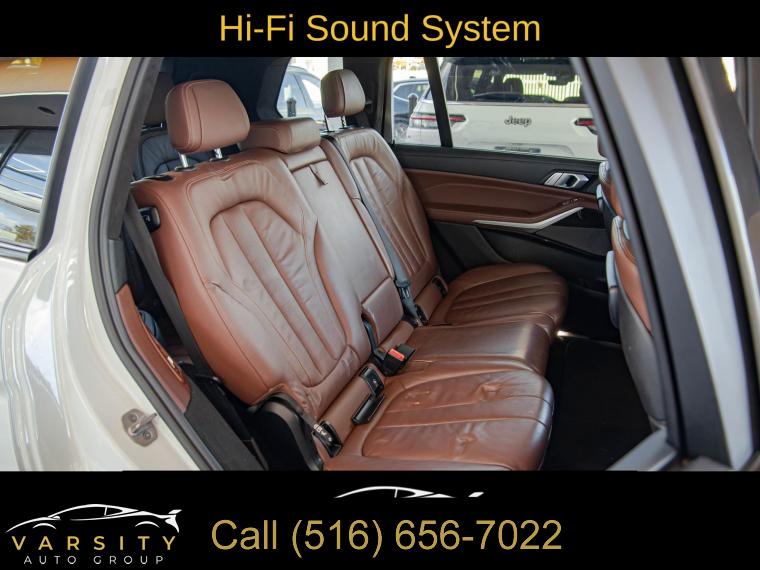 Navigation System, Connected Package Pro, Driving Assistance Professional Package, Executive Package (DISC), Luxury Seating Package, M Sport Package, M Sport Package (337), Parking Assistance Package, 10 Speakers, AM/FM radio: SiriusXM with 360L, AM/FM Stereo, harman/kardon Surround Sound System, Hi-Fi Sound System, Radio data system, SiriusXM w/360L, Air Conditioning, Automatic temperature control, Front dual zone A/C, Rear air conditioning, Rear dual zone A/C, Rear window defroster, Head restraints memory, Head-Up Display, Lumbar Support, Memory seat, Power driver seat, Power steering, Power windows, Remote keyless entry, Steering wheel memory, Steering wheel mounted audio controls, Auto-leveling suspension, Four wheel independent suspension, Speed-sensing steering, Traction control, 4-Wheel Disc Brakes, ABS brakes, Dual front impact airbags, Dual front side impact airbags, Emergency communication system: BMW Assist eCall, Front anti-roll bar, Knee airbag, Low tire pressure warning, Occupant sensing airbag, Overhead airbag, Power adjustable front head restraints, Rear anti-roll bar, Panoramic Sky Lounge LED Roof, Power moonroof, Soft-Close Automatic Doors, Brake assist, Electronic Stability Control, Exterior Parking Camera Rear, Rear-View Camera, Auto High-beam Headlights, Delay-off headlights, Front fog lights, Fully automatic headlights, Panic alarm, Security system, Extended Traffic Jam Assistant, Speed control, Aerodynamic Kit, Auto-dimming door mirrors, Bumpers: body-color, Heated door mirrors, Parking Assistant Plus, Power door mirrors, Roof rack: rails only, Shadowline Exterior Trim, Spoiler, Turn signal indicator mirrors, Without Lines Designation Outside, Active Driving Assistant Pro, Anthracite Alcantara Headliner, Apple CarPlay & Android Auto Compatibility, Apple CarPlay Compatibility, Auto tilt-away steering wheel, Auto-dimming Rear-View mirror, BMW Assist eCall, BMW TeleServices, Compass, ConnectedDrive Services, Drive Recorder, Driver door bin, Driver vanity mirror, Front reading lights, Garage door transmitter, Genuine wood console insert, Genuine wood dashboard insert, Genuine wood door panel insert, Gesture Control, Glass Controls, Heated & Cooled Cup Holders, Heated steering wheel, Illuminated entry, Leather Shift Knob, Live Cockpit Pro w/Navi, M Steering Wheel, Outside temperature display, Passenger vanity mirror, Rear reading lights, Rear seat center armrest, Sport steering wheel, Surround View w/3D View, Tachometer, Telescoping steering wheel, Tilt steering wheel, Trip computer, 3rd row seats: split-bench, Front Bucket Seats, Front Center Armrest, Front Massaging Seats, Front Ventilated Seats, Heated front seats, Heated Sport Seats, Multi-Contour Seats, Power Front Seats, Power passenger seat, Reclining 3rd row seat, SensaTec Upholstery, Split folding rear seat, Vernasca Leather Upholstery, High-Gloss Shadowline Roof Rails, Passenger door bin, Trailer Hitch, Alloy wheels, Wheels: 22" x 9.5" Fr & 22" x 10.5" Rr Bi-Color, Rear Electric Side Window Shades, Rain sensing wipers, Rear window wiper, Speed-Sensitive Wipers, Variably intermittent wipers, 3.64 Axle Ratio, The Price you See, is the Price You Pay!!!, BMW X7 xDrive40i, Mineral White Metallic, Coffee w/Vernasca Leather Upholstery