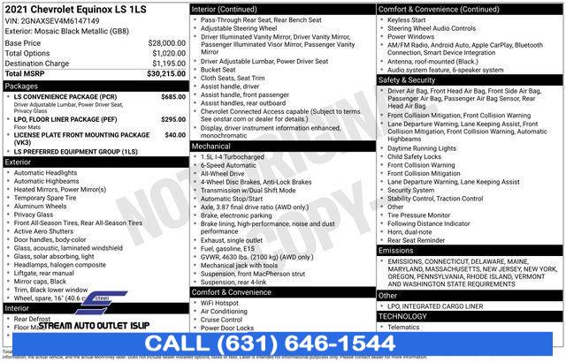 For more information on this 2021 Chevrolet Equinox, please call Stream Auto Outlet Islip at (631) 646-1544 or with the contact form on this page. This vehicle's vin number is 2GNAXSEV4M6147149 and is recorded as being in stock at Stream Auto Outlet Islip at 2232 Sunrise Hwy in Islip. See all cars from this dealership.