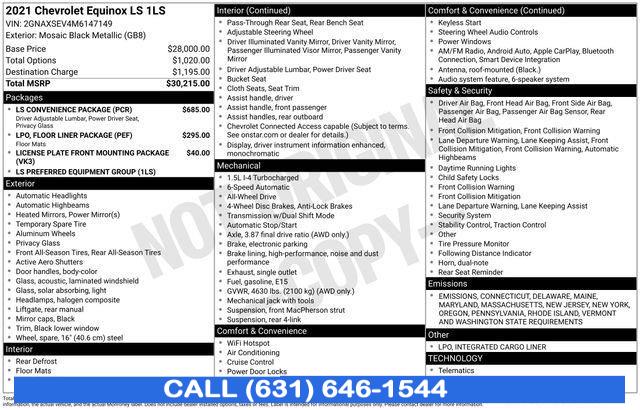 Discover the exceptional 2021 Chevrolet Equinox LS, a versatile and well-equipped SUV that offers a compelling blend of style, performance, and advanced technology. With its sleek black exterior, powerful 1.5L DOHC engine, and all-wheel-drive capability, this Equinox is poised to elevate your driving experience.