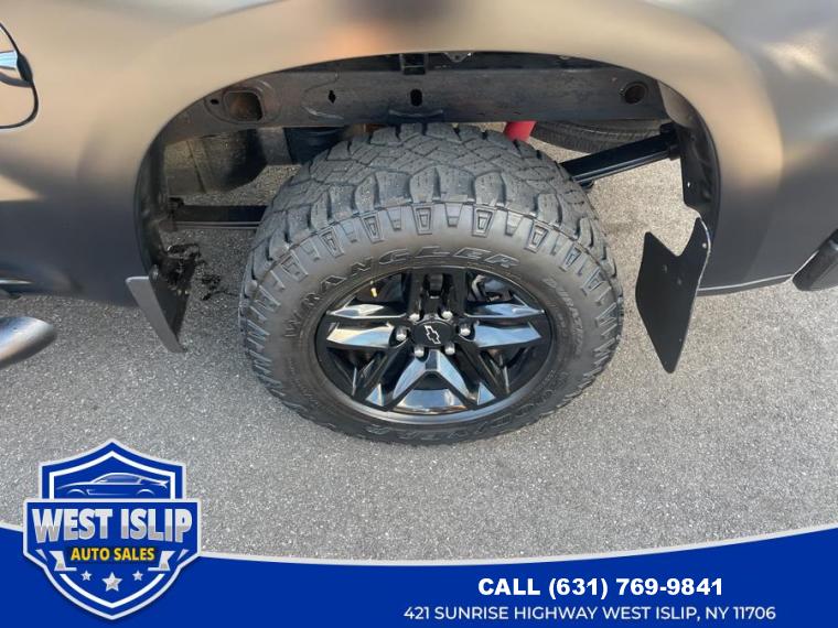 ABS, 4-Wheel Disc Brakes, A/C, A/T, Adjustable Steering Wheel, Security System, Aluminum Wheels, AM/FM Stereo, Auxiliary Audio Input, Power Outlet, Back-Up Camera, Cloth Seats, Cruise Control, Daytime Running Lights, Driver Air Bag, Driver Restriction Features, Stability Control, Four Wheel Drive, Floor Mats, Tow Hooks, Gasoline Fuel, Heated Mirrors, Keyless Entry, Locking/Limited Slip Differential, MP3 Capability, Telematics, Pass-Through Rear Seat, Passenger Air Bag, Passenger Air Bag Sensor, Power Door Locks, Power Mirror(s), Power Steering, Power Windows, Privacy Glass, Rear A/C, Rear Bench Seat, Rear Defrost, Rear Head Air Bag, Remote Engine Start, Requires Subscription, Satellite Radio, Front Side Air Bag, Front Head Air Bag, Smart Device Integration, Split Bench Seat, Tire Pressure Monitor, Tires - Front All-Season, Tires - Rear All-Season, Traction Control, Tow Hitch, V6 Cylinder Engine, WiFi Hotspot, Bluetooth Connection, Bumper, front (High gloss black.), Bumper, rear (High gloss black.), Cargo tie downs (12), fixed rated at 500 lbs per corner, CornerStep, rear bumper, Door handles, Black, Glass, deep-tinted, Grille (High gloss Black bars with mesh inserts.), Headlamps, halogen reflector with halogen Daytime Running Lamps, Lamps, cargo area, cab mounted integrated with center high mount stop lamp, with switch in bank on left side of steering wheel, LED Cargo Area Lighting located in pickup bed, activated with switch on center switch bank or key fob, Mirrors, outside heated power-adjustable, Recovery hooks, performance Red, Tailgate and bed rail protection cap, top, Tailgate, gate function manual with EZ Lift includes power lock and release, Tailgate, standard, Taillamps, LED with signature, Tire carrier lock, keyed cylinder lock that utilizes same key as ignition and door, Tire, spare 265/70R17SL all-season, blackwall, Tires, LT275/65R18C MT blackwall Goodyear Wrangler DuraTrac, Wheel, 17" x 8" (43.2 cm x 20.3 cm) full-size, steel spare, Wheels, 18" x 8.5" (45.7 cm x 21.6 cm) High gloss Black painted aluminum, Air conditioning, single-zone, Air vents, rear, heating/cooling, Assist handles front A-pillar mounted for driver and passenger, rear B-pillar mounted, Chevrolet Connected Access capable (Subject to terms. See onstar.com or dealer for details.), Compass located in instrument cluster, Cruise control, electronic with set and resume speed, steering wheel-mounted, Defogger, rear-window electric, Door locks, power, Driver Information Center, 3.5" diagonal monochromatic display, Exterior Temperature Display located in radio display, Floor covering, color-keyed carpeting, Floor mats, rubberized vinyl, front (Deleted when LPO floor liners are ordered.), Floor mats, rubberized-vinyl rear (Deleted when LPO floor liners are ordered.), Instrument cluster, 6-gauge cluster featuring speedometer, fuel level, engine temperature, tachometer, voltage and oil pressure, Mirror, inside rearview, manual tilt, Power outlet, front auxiliary, 12-volt, Rear Seat Reminder, Remote Keyless Entry, with 2 transmitters, Remote vehicle starter system, Seat adjuster, driver 4-way manual, Seat adjuster, passenger 4-way manual, Seat trim, Cloth, Seat, rear 60/40 folding bench (folds up), 3-passenger (includes child seat top tether anchor), Seats, front 40/20/40 split-bench with covered armrest storage, Steering column, Tilt-Wheel, manual with wheel locking security feature, Steering wheel, urethane, Theft-deterrent system, unauthorized entry, USB ports, 2 (first row) located on instrument panel, Window, power front, drivers express up/down, Window, power front, passenger express down, Windows, power rear, express down, Air filter, heavy-duty, Alternator, 170 amps, Auto-locking rear differential, Battery, heavy-duty 730 cold-cranking amps/70 Amp-hr, maintenance-free with rundown protection and retained accessory power (Included and only available with (LV3) 4.3L EcoTec3 V6 engine.), Brake lining wear indicator, Brakes, 4-wheel antilock, 4-wheel disc with DURALIFE rotors, Capless Fuel Fill, Cooling, external engine oil cooler, Durabed, pickup bed, Engine, 4.3L EcoTec3 V6 with Active Fuel Management, (285 hp [212 kW] @ 5300 rpm, 305 lb-ft of torque [413 Nm] @ 3900 rpm), Exhaust, single outlet (Requires (LV3) 4.3L EcoTec3 V6 engine. Includes (VQZ) polished exhaust tip, LPO.), Four wheel drive, Frame, fully-boxed, hydroformed front section, GVWR, 6900 lbs. (3130 kg) (Crew Cab models require (LV3) 4.3L EcoTec3 V6 engine.), Hill Descent Control, LPO, Polished exhaust tip (dealer-installed) (Included and only available with (LV3) 4.3L EcoTec3 V6 engine.), Rear axle, 3.42 ratio, Skid Plates, Steering, Electric Power Steering (EPS) assist, rack-and-pinion, Transfer case, two-speed electronic Autotrac with push button control (4WD models only), Transmission, 6-speed automatic, electronically controlled with overdrive and tow/haul mode. Includes Cruise Grade Braking and Powertrain Grade Braking, Airbags, dual-stage frontal airbags for driver and front outboard passenger; Seat-mounted side-impact airbags for driver and front outboard passenger; Head-curtain airbags for front and rear outboard seating positions; Includes front outboard Passenger Sensing System for frontal outboard passenger airbag (Always use seat belts and child restraints., Daytime Running Lamps with automatic exterior lamp control, Hitch Guidance dynamic single line to aid in trailer alignment for hitching, OnStar and Chevrolet connected services capable (Terms and limitations apply. See onstar.com or dealer for details.), Rear Vision Camera, StabiliTrak, stability control system with Proactive Roll Avoidance and traction control, includes electronic trailer sway control and hill start assist, Teen Driver a configurable feature that lets you activate customizable vehicle settings associated with a key fob, to help encourage safe driving behavior. It can limit certain available vehicle features, and it prevents certain safety systems from being turned 