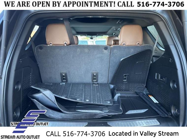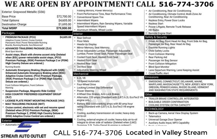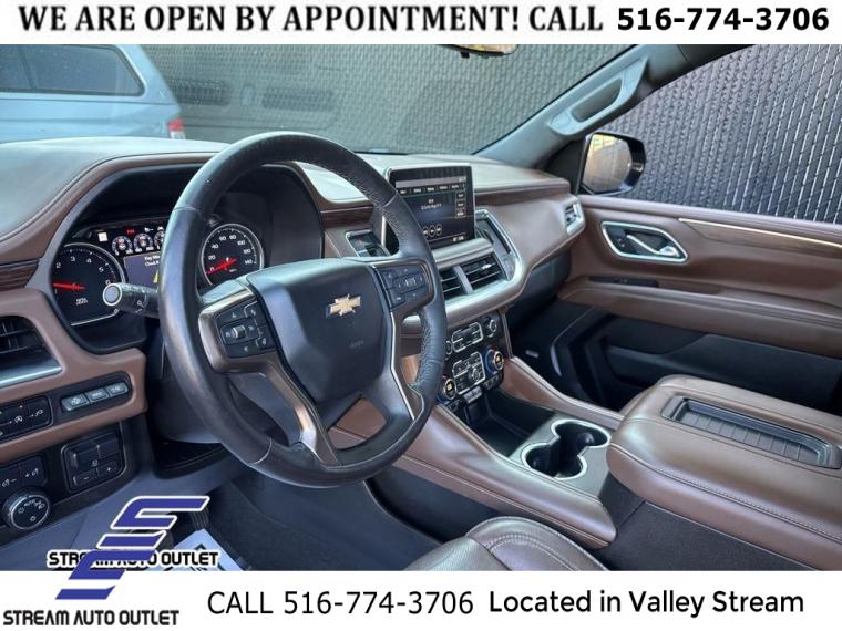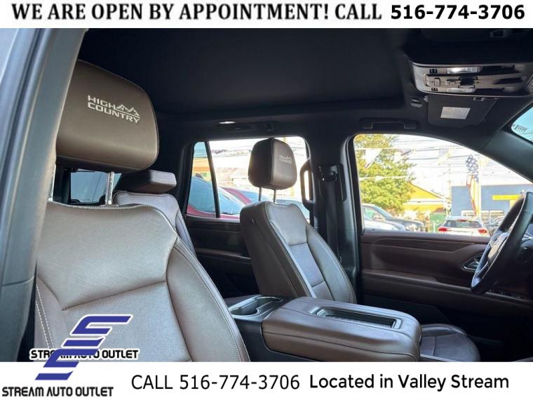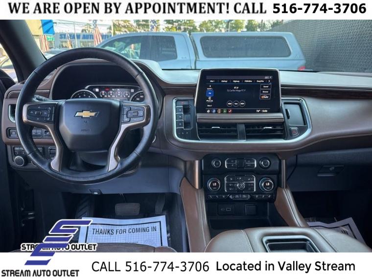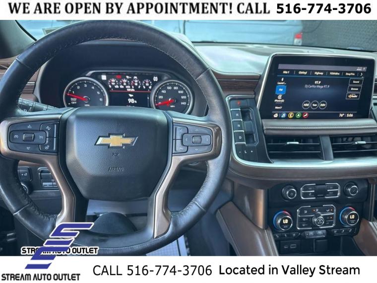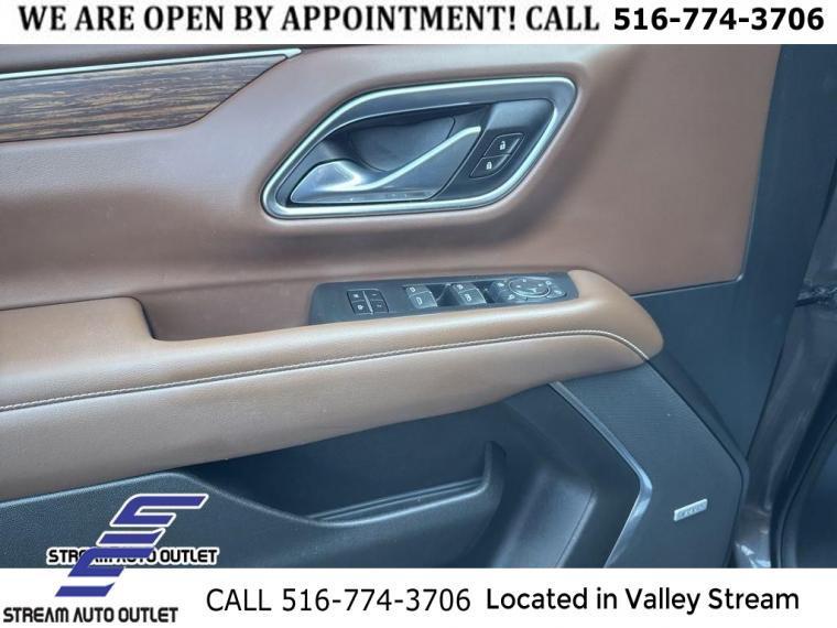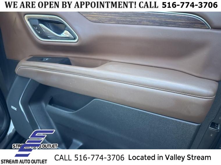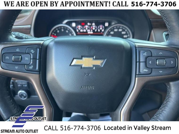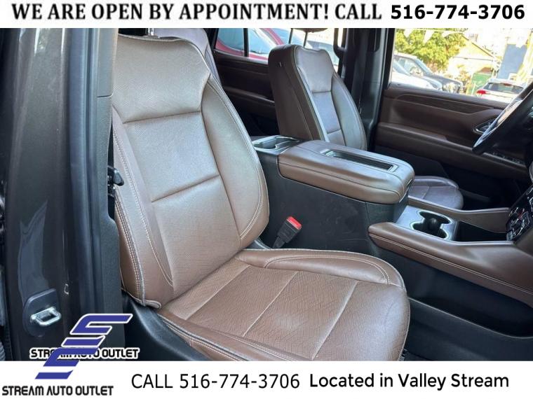Navigation System, Advanced Trailering Package, License Plate Front Mounting Package, Max Trailering Package, Preferred Equipment Group 3LZ, Premium Package, 10 Speakers, AM/FM radio: SiriusXM with 360L, Bose 10-Speaker Centerpoint Surround Audio Sys Ft, HD Radio, Premium audio system: Chevrolet Infotainment 3, Radio: Chevrolet Infotainment 3 Premium System, SiriusXM Radio w/360L, Air Conditioning, Automatic temperature control, Front dual zone A/C, Rear air conditioning, Rear window defroster, Enhanced Driver Information Center, Hands-Free Rear Power Programmable Liftgate, Heads-Up Display, Memory seat, Memory Settings, Power driver seat, Power steering, Power windows, Remote keyless entry, Remote Start, Steering wheel memory, Steering wheel mounted audio controls, Universal Home Remote, Adaptive suspension, Auto-leveling suspension, Automatic Heated Steering Wheel, Four wheel independent suspension, Magnetic Ride Control Suspension, Speed-sensing steering, Traction control, 4-Wheel Disc Brakes, ABS brakes, Dual front impact airbags, Dual front side impact airbags, Emergency communication system: OnStar and Chevrolet connected services capable, Enhanced Automatic Emergency Braking, Front anti-roll bar, Low tire pressure warning, Occupant sensing airbag, Overhead airbag, Rear anti-roll bar, Dual-Pane Power Panoramic Sunroof, Power Liftgate, Brake assist, Electronic Stability Control, Front & Rear Park Assist, Hill Descent Control, Auto High-beam Headlights, Delay-off headlights, Fully automatic headlights, LED Daytime Running Lamps, Driver & Front Outboard Passenger Airbags, Panic alarm, Security system, Adaptive Cruise Control, Speed control, 2-Speed Active Electronic AutoTrac Transfer Case, Extra Capacity Cooling System, Auto-dimming door mirrors, Bright Front & Rear Door Sill Plates, Bumpers: body-color, Chrome Door Handles w/Body-Color Strip, Dual Exhaust System, Heated door mirrors, Outside Heated Power-Adjustable Mirrors, Power door mirrors, Power-Retractable Assist Steps, Roof rack: rails only, Spoiler, Trailer Side Blind Zone Alert, Turn signal indicator mirrors, 15" Diagonal Multi-Color Head-Up Display, 1st & 2nd Row Color-Keyed Carpeted Floor Mats, 2 USB Data Ports, Apple CarPlay/Android Auto, Auto-dimming Rear-View mirror, Color-Keyed Carpeting Floor Covering, Compass, Driver door bin, Driver vanity mirror, Front reading lights, Garage door transmitter, HD Surround Vision, Heated steering wheel, Illuminated entry, Infotainment Display, Inside Rearview Auto-Dimming Rear Camera Mirror, Lane Change Alert w/Side Blind Zone Alert, Lane Keep Assist w/Lane Departure Warning, Leather steering wheel, Leather-Wrapped Steering Wheel, Outside temperature display, Overhead console, Passenger vanity mirror, Power Tilt & Telescopic Steering Column, Rear Camera Mirror Washer, Rear Cross Traffic Alert, Rear Pedestrian Alert, Rear reading lights, Safety Alert Seat, SiriusXM NavTraffic, Tachometer, Telescoping steering wheel, Tilt steering wheel, Trip computer, Voltmeter, 12-Way Power Driver & Passenger Seat Adjusters, 3rd Row 60/40 Power-Folding Split-Bench Seat, 3rd row seats: split-bench, Floor Console w/Storage Area, Front Bucket Seats, Front Center Armrest, Front High-Back Reclining Bucket Seats, Heated & Ventilated Driver & Front Passenger Seats, Heated 2nd Row Outboard Seats, Heated Driver & Front Passenger Seats, Heated front seats, Heated rear seats, Perforated Leather Seat Trim, Power passenger seat, Power Release 2nd Row Bucket Seats, Split folding rear seat, Ventilated front seats, Passenger door bin, Advanced Trailering System, Hitch Guidance w/Hitch View, Integrated Trailer Brake Controller, Alloy wheels, Set of 4 Wheel Locks (LPO), Wheels: 22" x 9" Sterling Silver Premium Painted, Rain sensing wipers, Rear window wiper, Variably intermittent wipers, 3.23 Rear Axle Ratio, * NYS INSPECTION INCLUDED *, * FULL INTERIOR / EXTERIOR DETAIL *, * BLUETOOTH *, * LIMITED NYS LEMON LAW WARRANTY INCLUDED *, *FRESH OIL CHANGE *, * 150 MULTI POINT INSPECTION *