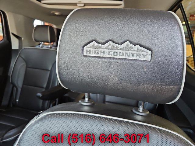 IRIDESCENT PEARL TRICOAT, LPO ALL-WEATHER FLOOR LINER 3RD ROW, HIGH COUNTRY PREFERRED EQUIPMENT GROUP Includes Standard Equipment, LPO ALL-WEATHER FLOOR LINER FIRST AND SECOND ROW, LPO FLOOR LINER PACKAGE includes (RIA) front and second row all-weather floor liner LPO (RIB) third row all-weather floor liner LPO and (CAV) integrated cargo liner LPO, LICENSE PLATE FRONT MOUNTING PACKAGE (will be forced on orders with ship-to states that require a front license plate), LPO BLACK BOWTIE EMBLEMS FRONT AND REAR, LPO BRIGHT WHEEL LOCKS includes 4 locks and 1 key, TRANSMISSION 9-SPEED AUTOMATIC (STD), SEATS FRONT BUCKET (STD), AUDIO SYSTEM CHEVROLET INFOTAINMENT 3 PREMIUM SYSTEM with connected Navigation 8 diagonal HD color touchscreen AM/FM stereo Bluetooth audio streaming for 2 active devices Apple CarPlay and Android Auto capable enhanced voice recognition additional memory for in-vehicle apps cloud connected personalization for select infotainment and vehicle settings. Subscription required for enhanced and connected services after trial period (STD), JET BLACK PERFORATED LEATHER-APPOINTED SEAT TRIM, LPO INTEGRATED CARGO LINER, ENGINE 3.6L V6 SIDI VVT (310 hp [232.0 kW] @ 6800 rpm 266 lb-ft of torque [361 N-m] @ 2800 rpm) (STD), Cruise Control, Lane Departure Warning, Lane Keeping Assist, Adaptive Cruise Control, Front Collision Mitigation, Front Collision Warning, Automatic Highbeams, All Wheel Drive, Tow Hitch, Back-Up Camera, Power Steering, ABS, 4-Wheel Disc Brakes, Aluminum Wheels, Tires - Front Performance, Tires - Rear Performance, Conventional Spare Tire, Temporary Spare Tire, Generic Sun/Moonroof, Dual Moonroof, Automatic Highbeams, Automatic Headlights, Fog Lamps, Heated Mirrors, Power Mirror(s), Integrated Turn Signal Mirrors, Privacy Glass, Intermittent Wipers, Intermittent Wipers, Remote Trunk Release, Power Liftgate, Hands-Free Liftgate, AM/FM Stereo, Navigation System, MP3 Capability, Bluetooth Connection, Auxiliary Audio Input, Smart Device Integration, Premium Sound System, Satellite Radio, Requires Subscription, Satellite Radio, Requires Subscription, WiFi Hotspot, Bucket Seats, 3rd Row Seat, Bucket Seats, Leather Seats, Power Driver Seat, Power Passenger Seat, Driver Adjustable Lumbar, Passenger Adjustable Lumbar, Heated Front Seat(s), Heated Front Seat(s), Cooled Front Seat(s), Power Driver Seat, Adjustable Steering Wheel, Mirror Memory, Seat Memory, Heated Rear Seat(s), 3rd Row Seat, Floor Mats, Leather Steering Wheel, Heated Steering Wheel, Adjustable Steering Wheel, Cruise Control, Steering Wheel Audio Controls, Power Windows, Power Door Locks, Keyless Entry, Power Door Locks, Remote Engine Start, Universal Garage Door Opener, Cruise Control, Adaptive Cruise Control, Security System, Security System, Auxiliary Audio Input, Climate Control, Multi-Zone A/C, A/C, Rear A/C, Rear Defrost, Driver Vanity Mirror, Passenger Vanity Mirror, Driver Illuminated Vanity Mirror, Passenger Illuminated Visor Mirror, Front Reading Lamps, Rear Reading Lamps, Traction Control, Stability Control, Daytime Running Lights, Driver Air Bag, Passenger Air Bag, Front Side Air Bag, Front Head Air Bag, Rear Head Air Bag, Passenger Air Bag Sensor, Telematics, Requires Subscription, Auto-Dimming Rearview Mirror, Back-Up Camera, Back-Up Camera, Aerial View Display System, Rear Parking Aid, Blind Spot Monitor, Lane Departure Warning, Lane Keeping Assist, Front Collision Warning, Cross-Traffic Alert, Front Collision Mitigation, Brake Assist, Front Collision Mitigation, Front Collision Warning, Child Safety Locks, Driver Restriction Features, Tire Pressure Monitor
