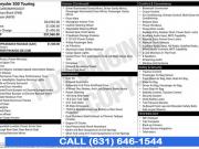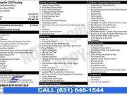 Quick Order Package 22E, Sport Appearance Package, 6 Speakers, AM/FM radio: SiriusXM, Radio data system, Radio: Uconnect 4C w/8.4" Display, Air Conditioning, Automatic temperature control, Front dual zone A/C, Rear window defroster, Power driver seat, Power steering, Power windows, Remote keyless entry, Steering wheel mounted audio controls, Four wheel independent suspension, Speed-sensing steering, Traction control, 4-Wheel Disc Brakes, ABS brakes, Anti-whiplash front head restraints, Dual front impact airbags, Dual front side impact airbags, Emergency communication system: SiriusXM Guardian, Front anti-roll bar, Knee airbag, Low tire pressure warning, Occupant sensing airbag, Overhead airbag, Rear anti-roll bar, Brake assist, Electronic Stability Control, ParkView Rear Back-Up Camera, Black Headlamp Bezels, Delay-off headlights, Fully automatic headlights, Panic alarm, Security system, Speed control, Black Chrome Surround 300S Grille, Black LED Taillamps, Black Noise 300 Badge, Black Noise AWD Badge, Black Noise Wing Badges - Black Insert, Bumpers: body-color, Gloss Black DLO Surround Molding, Heated door mirrors, Power door mirrors, Apple CarPlay/Android Auto, Auto-dimming Rear-View mirror, Compass, Driver door bin, Driver vanity mirror, Front reading lights, Illuminated entry, Outside temperature display, Overhead console, Passenger vanity mirror, Rear reading lights, Rear seat center armrest, Tachometer, Telescoping steering wheel, Tilt steering wheel, Trip computer, Cloth Bucket Seats, Front Bucket Seats, Front Center Armrest, Split folding rear seat, Passenger door bin, 19" x 7.5" Polished Aluminum Wheels, Alloy wheels, Wheels: 19" x 7.5" Black Noise Painted, Speed-Sensitive Wipers, Variably intermittent wipers, * NYS INSPECTION INCLUDED *, * FULL INTERIOR / EXTERIOR DETAIL *, * BLUETOOTH *, * LIMITED NYS LEMON LAW WARRANTY INCLUDED *, *FRESH OIL CHANGE *, * 150 MULTI POINT INSPECTION *