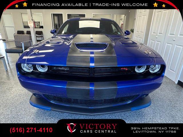 All pricing and details are believed to be accurate, but we do not warrant or guarantee such accuracy. The prices shown above may vary from region to region, as will incentives, and are subject to change. All cars are sold cosmetically As-Is. Vehicle information is based on standard equipment and may vary from vehicle to vehicle. Call or email for complete vehicle specific information. Price Does not include tax, title, license, destination charges, finance charges, or any reconditioning fees. Our special Internet pricing cannot be extended without a printed copy of the online pricing. The in-store price may exceed our special online pricing. Sorry but we cannot extend special pricing without a printed copy of the on-line pricing. To take advantage of our special Internet discounts, please print this page and present it to your salesperson at the BEGINNING of the transaction. Special Internet pricing posted on this ad/coupon/promotion is only available to customers who reference such pricing & present the ad at time of sale otherwise our store standard list price applies. Please be advised this ad is a Special Internet only ad. Prices can be modified and adjusted weekly, daily and sometimes hourly due to inquiries, bidding and website traffic on any Vehicles. All displayed inventory is subject to prior sale and all prices expire at midnight on the date displayed. Every reasonable effort has been made to ensure the accuracy of the information contained on this site, however absolute accuracy cannot be guaranteed. Advertised special excludes state tax, title, license, registration, NY state inspection, NYS tire recycling fee, finance charges, and dealer fees if applicable. Please verify any information in question with the dealership sales manager. This is easily done by calling us at (516) 271-4110 or by visiting us at the dealership. **With approved credit. Indigo Blue 2021 Dodge Challenger R/T Scat Pack RWD 8-Speed Automatic SRT HEMI 6.4L V8 MDS