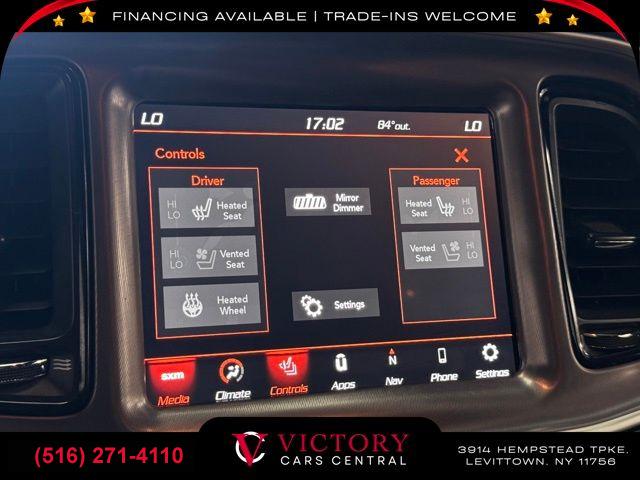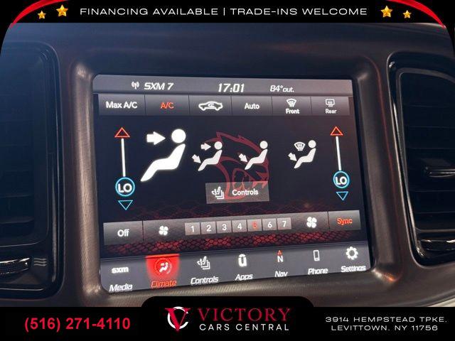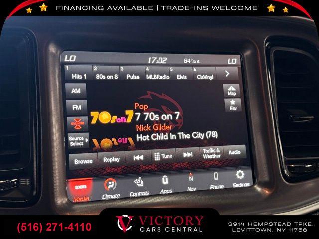 GPS Navigation, Driver Convenience Group, Dynamics Package, harman/kardon Audio Group w/Subwoofer, Plus Package, Quick Order Package 24G R/T Scat Pack, 18 Speakers Premium Audio System, 5-Year SiriusXM Traffic Service, 5-Year SiriusXM Travel Link Service, 6 Speakers, AM/FM radio: SiriusXM, GPS Antenna Input, harman/kardon GreenEdge Amp, HD Radio, Integrated Center Stack Radio, Media Hub (2 USB, AUX), Radio data system, Radio: Uconnect 4C Nav w/8.4" Display, Radio: Uconnect 4C w/8.4" Display, Shark Fin Antenna, SiriusXM Satellite Radio, Trunk Mounted Subwoofer, Air Conditioning, Automatic temperature control, Front dual zone A/C, Rear window defroster, Power driver seat, Power steering, Power windows, Radio/Driver Seat/Mirrors Memory, Remote keyless entry, Steering wheel mounted audio controls, Flat-Bottom Steering Wheel, Four wheel independent suspension, Power Tilt/Telescope Steering Column, Speed-sensing steering, Traction control, 4-Wheel Disc Brakes, ABS brakes, Anti-whiplash front head restraints, Brembo 6-Pot Fixed Front Caliper Brakes, Dual front impact airbags, Dual front side impact airbags, Emergency communication system: SiriusXM Guardian, Front anti-roll bar, Low tire pressure warning, Overhead airbag, Rear anti-roll bar, Red Brake Calipers, Blind Spot & Cross Path Detection, Brake assist, Electronic Stability Control, ParkView Rear Back-Up Camera, Delay-off headlights, Front fog lights, Fully automatic headlights, High-Intensity Discharge Headlamps, Panic alarm, Security system, Speed control, 230MM Rear Axle, Adaptive Damping Suspension, Bumpers: body-color, Front License Plate Bracket, Heated door mirrors, Power door mirrors, Power Multi-Function Foldaway Mirrors, Spoiler, 1-Yr SiriusXM Guardian Trial, 4G LTE Wi-Fi Hot Spot, 8.4" Touchscreen Display, Apple CarPlay, Apple CarPlay/Android Auto, Auto-dimming Rear-View mirror, Compass, Door Trim Panel w/Ambient Lighting, Driver door bin, Driver vanity mirror, For Details, Visit DriveUconnect.com, Front reading lights, Garage door transmitter, Google Android Auto, Heated Steering Wheel, Heated steering wheel, Illuminated entry, Integrated Voice Command w/Bluetooth, Leather Shift Knob, Outside temperature display, Overhead console, Passenger vanity mirror, Premium-Stitched Dash Panel, Rear reading lights, Rear seat center armrest, Scat Pack Logo Houndstooth Seat, SiriusXM Traffic Plus, SiriusXM Travel Link, Sport steering wheel, Surround Sound, Tachometer, Telescoping steering wheel, Tilt steering wheel, Trip computer, USB Host Flip, Front Bucket Seats, Front Center Armrest, Heated front seats, Split folding rear seat, Passenger door bin, Alloy wheels, Wheels: 20" x 9.5" Forged/Painted Aluminum, Wheels: 20" x 9" Lo Gloss Granite Crystal, Variably intermittent wipers, 3.09 Rear Axle Ratio