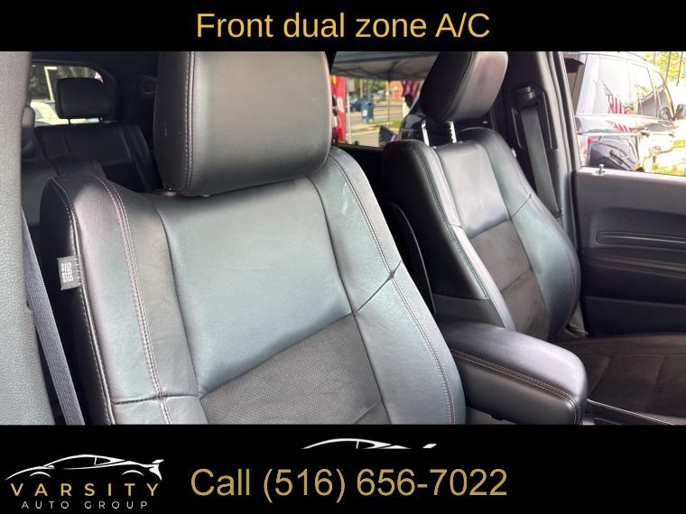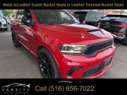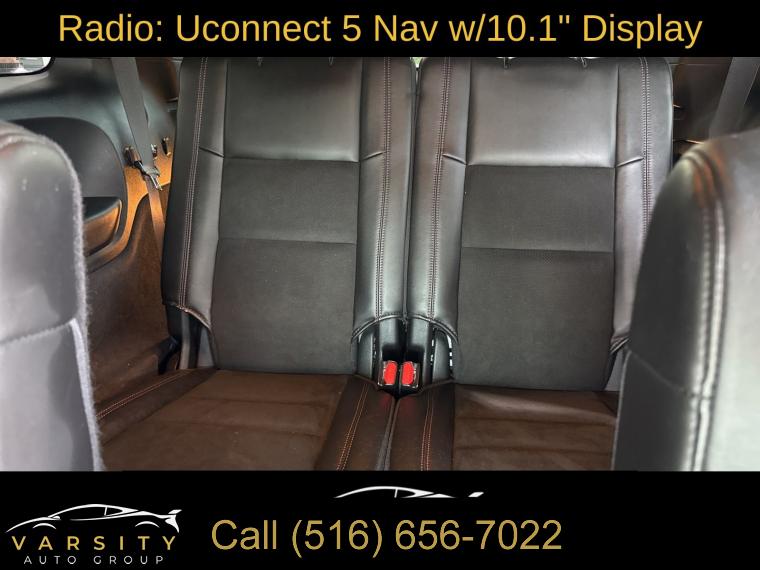 GPS Navigation, Navigation system: TomTom, Blacktop Package, Quick Order Package 22S, 9 Speakers, AM/FM radio: SiriusXM w/360L, Audio memory, GPS Antenna Input, HD Radio, Integrated Center Stack Radio, Integrated Voice Command w/Bluetooth, Radio data system, Radio: Uconnect 5 Nav w/10.1" Display, SiriusXM Satellite Radio, SiriusXM w/360L, Air Conditioning, Automatic temperature control, Front dual zone A/C, Rear air conditioning, Rear window defroster, Memory seat, Power driver seat, Power steering, Power windows, Remote keyless entry, Steering wheel mounted audio controls, Auto-leveling suspension, Four wheel independent suspension, Rear Load Leveling Suspension, Speed-sensing steering, Traction control, 4-Wheel Disc Brakes, ABS brakes, Anti-whiplash front head restraints, Dual front impact airbags, Dual front side impact airbags, Emergency communication system: SiriusXM Guardian, Front anti-roll bar, Knee airbag, Low tire pressure warning, Occupant sensing airbag, Overhead airbag, Rear anti-roll bar, Power Sunroof, Power Liftgate, Brake assist, Electronic Stability Control, ParkView Rear Back-Up Camera, Auto High-beam Headlights, Delay-off headlights, Front fog lights, Fully automatic headlights, Panic alarm, Security system, Speed control, Heavy-Duty Engine Cooling, Auto-dimming door mirrors, Bumpers: body-color, Front License Plate Bracket, Gloss Black Badges, Gloss Black Exterior Mirrors, Heated door mirrors, Hemi Badge, Power door mirrors, Satin Black Dodge Tail Lamp Badge, Spoiler, Turn signal indicator mirrors, 10.1" Touchscreen Display, 2nd Row Mini Console w/Cupholders, 3rd Row Floor Mat & Mini Console, 4G LTE Wi-Fi Hot Spot, Apple CarPlay, Apple CarPlay/Android Auto, Auto-dimming Rear-View mirror, Compass, Connected Travel & Traffic Services, Disassociated Touchscreen Display, Driver door bin, Driver vanity mirror, Front reading lights, Garage door transmitter, Global Telematics Box Module (TBM), Google Android Auto, Heated steering wheel, Illuminated entry, Leather steering wheel, Leather Suede Bucket Seats, Manufacturer's Statement of Origin, Outside temperature display, Overhead console, Passenger vanity mirror, Radar Red Interior Accent Stitch, Rear reading lights, Rear seat center armrest, SiriusXM Guardian - Included Trial (B), Tachometer, Telescoping steering wheel, Tilt steering wheel, Trip computer, USB Host Flip, Voltmeter, 2nd Row Fold/Tumble Captain Chairs, 3rd row seats: split-bench, 6-Passenger Seating, Front Bucket Seats, Heated front seats, Heated rear seats, Power passenger seat, Split folding rear seat, Front Center Armrest w/Storage, Passenger door bin, Wheels: 20" x 8.0" Black Noise Aluminum, Rain sensing wipers, Rear window wiper, Speed-Sensitive Wipers, Variably intermittent wipers, 3.09 Rear Axle Ratio, 2021 Dodge Durango R/T, Redline 2 Coat Pearl, Black w/Leather Suede Bucket Seats or Leather Trimmed Bucket Seats, 5.7L Hemi V8, All wheel drive, Quick Order Package 22 S, Clean CARFAX, Low Miles