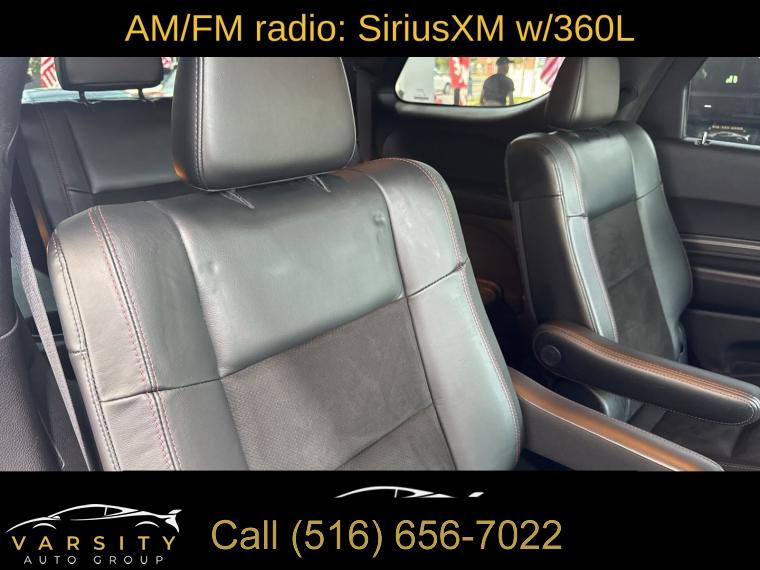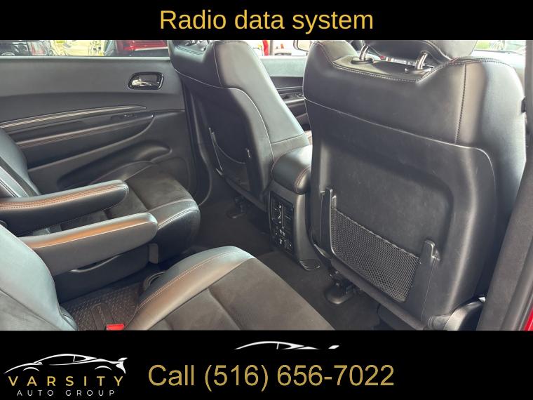 GPS Navigation, Navigation system: TomTom, Blacktop Package, Quick Order Package 22S, 9 Speakers, AM/FM radio: SiriusXM w/360L, Audio memory, GPS Antenna Input, HD Radio, Integrated Center Stack Radio, Integrated Voice Command w/Bluetooth, Radio data system, Radio: Uconnect 5 Nav w/10.1" Display, SiriusXM Satellite Radio, SiriusXM w/360L, Air Conditioning, Automatic temperature control, Front dual zone A/C, Rear air conditioning, Rear window defroster, Memory seat, Power driver seat, Power steering, Power windows, Remote keyless entry, Steering wheel mounted audio controls, Auto-leveling suspension, Four wheel independent suspension, Rear Load Leveling Suspension, Speed-sensing steering, Traction control, 4-Wheel Disc Brakes, ABS brakes, Anti-whiplash front head restraints, Dual front impact airbags, Dual front side impact airbags, Emergency communication system: SiriusXM Guardian, Front anti-roll bar, Knee airbag, Low tire pressure warning, Occupant sensing airbag, Overhead airbag, Rear anti-roll bar, Power Sunroof, Power Liftgate, Brake assist, Electronic Stability Control, ParkView Rear Back-Up Camera, Auto High-beam Headlights, Delay-off headlights, Front fog lights, Fully automatic headlights, Panic alarm, Security system, Speed control, Heavy-Duty Engine Cooling, Auto-dimming door mirrors, Bumpers: body-color, Front License Plate Bracket, Gloss Black Badges, Gloss Black Exterior Mirrors, Heated door mirrors, Hemi Badge, Power door mirrors, Satin Black Dodge Tail Lamp Badge, Spoiler, Turn signal indicator mirrors, 10.1" Touchscreen Display, 2nd Row Mini Console w/Cupholders, 3rd Row Floor Mat & Mini Console, 4G LTE Wi-Fi Hot Spot, Apple CarPlay, Apple CarPlay/Android Auto, Auto-dimming Rear-View mirror, Compass, Connected Travel & Traffic Services, Disassociated Touchscreen Display, Driver door bin, Driver vanity mirror, Front reading lights, Garage door transmitter, Global Telematics Box Module (TBM), Google Android Auto, Heated steering wheel, Illuminated entry, Leather steering wheel, Leather Suede Bucket Seats, Manufacturer's Statement of Origin, Outside temperature display, Overhead console, Passenger vanity mirror, Radar Red Interior Accent Stitch, Rear reading lights, Rear seat center armrest, SiriusXM Guardian - Included Trial (B), Tachometer, Telescoping steering wheel, Tilt steering wheel, Trip computer, USB Host Flip, Voltmeter, 2nd Row Fold/Tumble Captain Chairs, 3rd row seats: split-bench, 6-Passenger Seating, Front Bucket Seats, Heated front seats, Heated rear seats, Power passenger seat, Split folding rear seat, Front Center Armrest w/Storage, Passenger door bin, Wheels: 20" x 8.0" Black Noise Aluminum, Rain sensing wipers, Rear window wiper, Speed-Sensitive Wipers, Variably intermittent wipers, 3.09 Rear Axle Ratio, The Price you See, is the Price You Pay!!!, 2021 Dodge Durango R/T, Redline 2 Coat Pearl, Black w/Leather Suede Bucket Seats or Leather Trimmed Bucket Seats, 5.7L Hemi V8, All wheel drive, Quick Order Package 22 S, Clean CARFAX, Low Miles