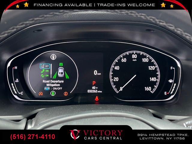 10 Speakers, AM/FM radio: SiriusXM, Radio data system, Radio: 450-Watt AM/FM/HD Premium Audio System, Air Conditioning, Automatic temperature control, Front dual zone A/C, Rear window defroster, Memory seat, Power driver seat, Power steering, Power windows, Remote keyless entry, Steering wheel mounted audio controls, Four wheel independent suspension, Speed-sensing steering, Traction control, 4-Wheel Disc Brakes, ABS brakes, Dual front impact airbags, Dual front side impact airbags, Emergency communication system: HondaLink, Front anti-roll bar, Knee airbag, Low tire pressure warning, Occupant sensing airbag, Overhead airbag, Rear anti-roll bar, Power moonroof, Blind Spot Information (BSI) System warning, Brake assist, Electronic Stability Control, Forward collision: Collision Mitigation Braking System (CMBS) + FCW mitigation, Lane Departure Warning System, Exterior Parking Camera Rear, Auto High-beam Headlights, Delay-off headlights, Front fog lights, Fully automatic headlights, Panic alarm, Security system, Adaptive Cruise Control: Adaptive Cruise Control (ACC) with Low-Speed Follow, Speed control, Bumpers: body-color, Heated door mirrors, Power door mirrors, Turn signal indicator mirrors, Apple CarPlay/Android Auto, Auto-dimming Rear-View mirror, Driver door bin, Driver vanity mirror, Front reading lights, Garage door transmitter: HomeLink, Illuminated entry, Leather Shift Knob, Leather steering wheel, Outside temperature display, Overhead console, Passenger vanity mirror, Rear seat center armrest, Tachometer, Telescoping steering wheel, Tilt steering wheel, Trip computer, Front Bucket Seats, Front Center Armrest, Heated Front Bucket Seats, Heated front seats, Leather-Trimmed Seats, Power passenger seat, Split folding rear seat, Passenger door bin, 17" Machine-Finished Alloy Wheels, Alloy wheels, Speed-Sensitive Wipers, Variably intermittent wipers