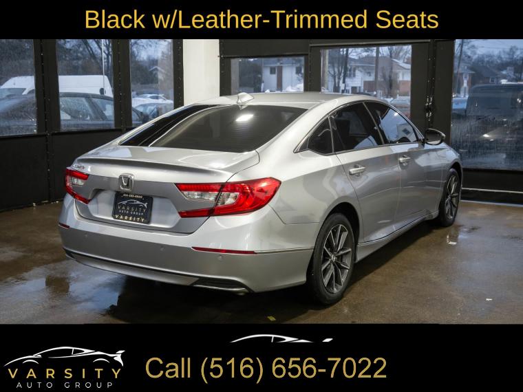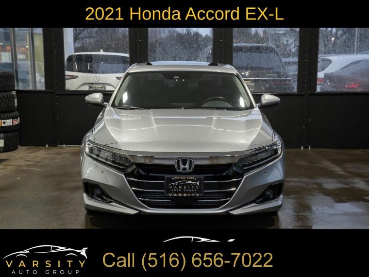 2021 Honda Accord EX-L, Modern Steel Metallic, Black w/Leather-Trimmed Seats, Clean CARFAX, Black w/Leather-Trimmed Seats, 10 Speakers, 17" Machine-Finished Alloy Wheels, 4-Wheel Disc Brakes, ABS brakes, Adaptive Cruise Control: Adaptive Cruise Control (ACC) with Low-Speed Follow, Air Conditioning, Alloy wheels, AM/FM radio: SiriusXM, Apple CarPlay/Android Auto, Auto High-beam Headlights, Auto-dimming Rear-View mirror, Automatic temperature control, Blind Spot Information (BSI) System warning, Brake assist, Bumpers: body-color, Delay-off headlights, Driver door bin, Driver vanity mirror, Dual front impact airbags, Dual front side impact airbags, Electronic Stability Control, Emergency communication system: HondaLink, Exterior Parking Camera Rear, Forward collision: Collision Mitigation Braking System (CMBS) + FCW mitigation, Four wheel independent suspension, Front anti-roll bar, Front Bucket Seats, Front Center Armrest, Front dual zone A/C, Front fog lights, Front reading lights, Fully automatic headlights, Garage door transmitter: HomeLink, Heated door mirrors, Heated Front Bucket Seats, Heated front seats, Illuminated entry, Knee airbag, Lane Departure Warning System, Leather Shift Knob, Leather steering wheel, Leather-Trimmed Seats, Low tire pressure warning, Memory seat, Occupant sensing airbag, Outside temperature display, Overhead airbag, Overhead console, Panic alarm, Passenger door bin, Passenger vanity mirror, Power door mirrors, Power driver seat, Power moonroof, Power passenger seat, Power steering, Power windows, Radio data system, Radio: 450-Watt AM/FM/HD Premium Audio System, Rear anti-roll bar, Rear seat center armrest, Rear window defroster, Remote keyless entry, Security system, Speed control, Speed-sensing steering, Speed-Sensitive Wipers, Split folding rear seat, Steering wheel mounted audio controls, Tachometer, Telescoping steering wheel, Tilt steering wheel, Traction control, Trip computer, Turn signal indicator mirrors, Variably intermittent wipers. Modern Steel Metallic 2021 Honda Accord EX-L FWD CVT 1.5T I4 DOHC 16V Turbocharged VTEC Odometer is 817 miles below market average! 30/38 City/Highway MPG