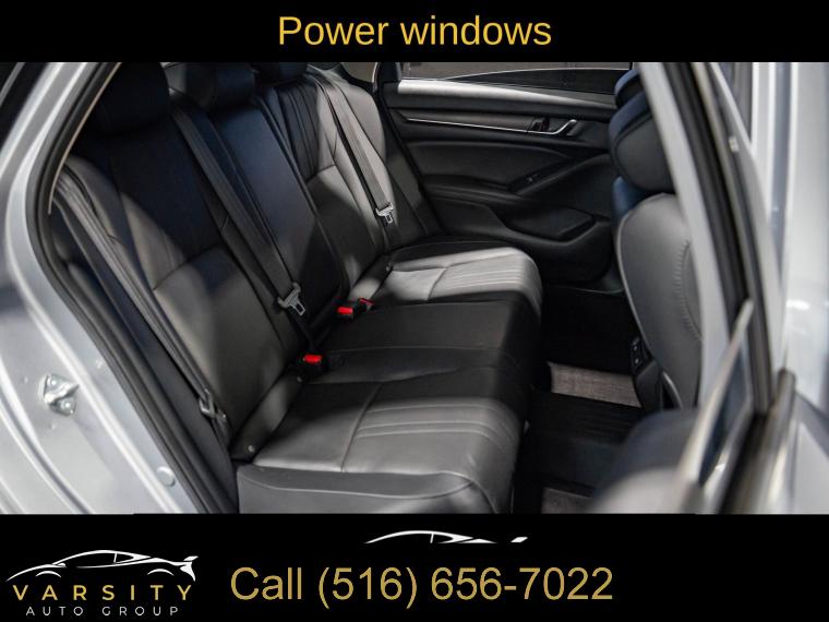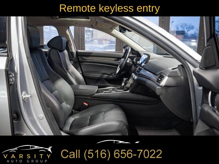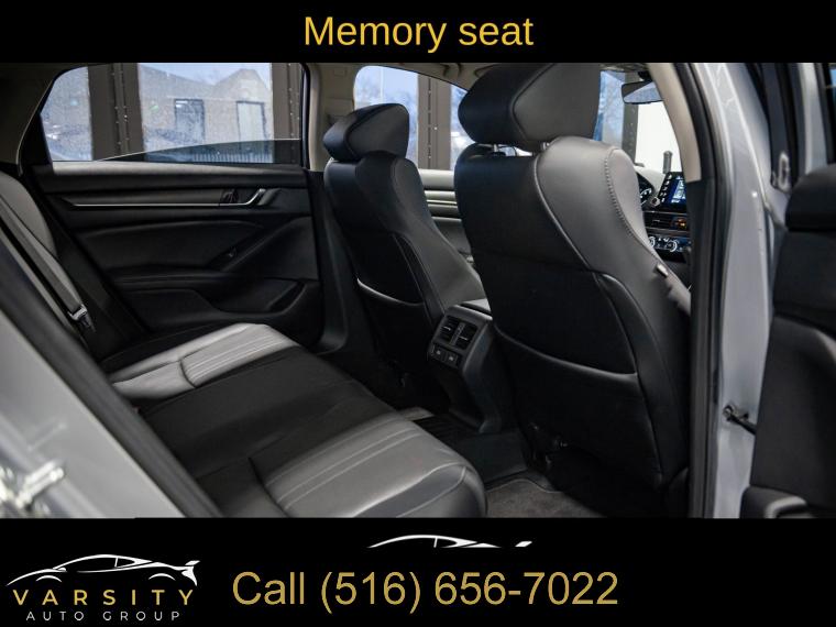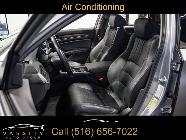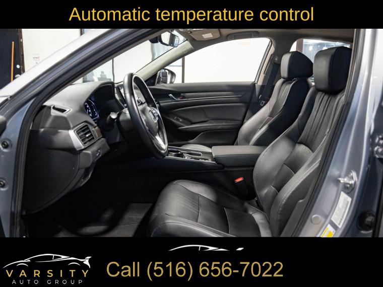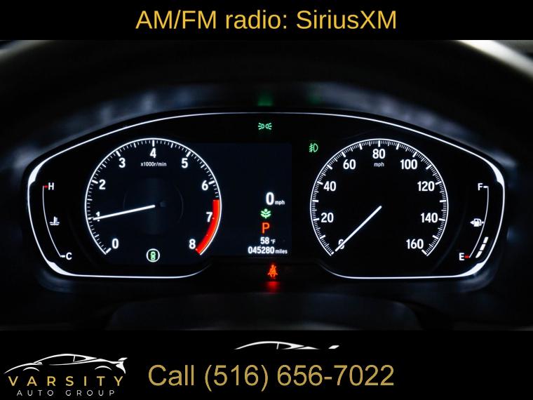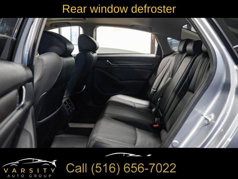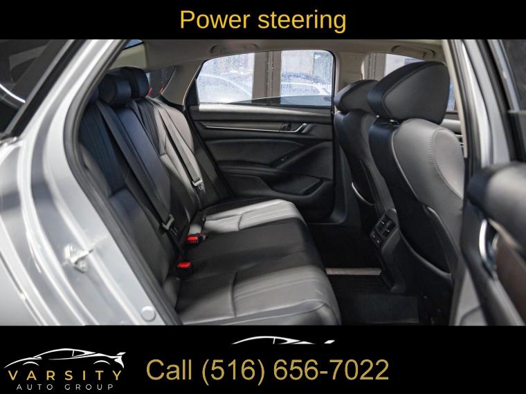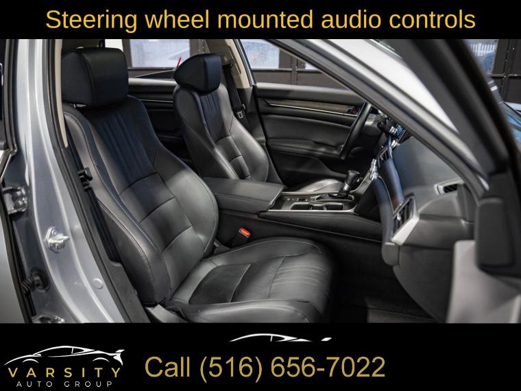 10 Speakers, AM/FM radio: SiriusXM, Radio data system, Radio: 450-Watt AM/FM/HD Premium Audio System, Air Conditioning, Automatic temperature control, Front dual zone A/C, Rear window defroster, Memory seat, Power driver seat, Power steering, Power windows, Remote keyless entry, Steering wheel mounted audio controls, Four wheel independent suspension, Speed-sensing steering, Traction control, 4-Wheel Disc Brakes, ABS brakes, Dual front impact airbags, Dual front side impact airbags, Emergency communication system: HondaLink, Front anti-roll bar, Knee airbag, Low tire pressure warning, Occupant sensing airbag, Overhead airbag, Rear anti-roll bar, Power moonroof, Blind Spot Information (BSI) System warning, Brake assist, Electronic Stability Control, Forward collision: Collision Mitigation Braking System (CMBS) + FCW mitigation, Lane Departure Warning System, Exterior Parking Camera Rear, Auto High-beam Headlights, Delay-off headlights, Front fog lights, Fully automatic headlights, Panic alarm, Security system, Adaptive Cruise Control: Adaptive Cruise Control (ACC) with Low-Speed Follow, Speed control, Bumpers: body-color, Heated door mirrors, Power door mirrors, Turn signal indicator mirrors, Apple CarPlay/Android Auto, Auto-dimming Rear-View mirror, Driver door bin, Driver vanity mirror, Front reading lights, Garage door transmitter: HomeLink, Illuminated entry, Leather Shift Knob, Leather steering wheel, Outside temperature display, Overhead console, Passenger vanity mirror, Rear seat center armrest, Tachometer, Telescoping steering wheel, Tilt steering wheel, Trip computer, Front Bucket Seats, Front Center Armrest, Heated Front Bucket Seats, Heated front seats, Leather-Trimmed Seats, Power passenger seat, Split folding rear seat, Passenger door bin, 17" Machine-Finished Alloy Wheels, Alloy wheels, Speed-Sensitive Wipers, Variably intermittent wipers, 2021 Honda Accord EX-L, Modern Steel Metallic, Black w/Leather-Trimmed Seats, Clean CARFAX