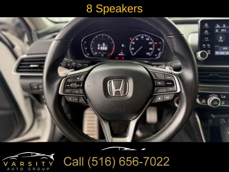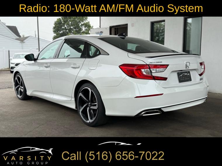 8 Speakers, AM/FM radio, Radio data system, Radio: 180-Watt AM/FM Audio System, Air Conditioning, Automatic temperature control, Front dual zone A/C, Rear window defroster, Power driver seat, Power steering, Power windows, Remote keyless entry, Steering wheel mounted audio controls, Four wheel independent suspension, Speed-sensing steering, Traction control, 4-Wheel Disc Brakes, ABS brakes, Dual front impact airbags, Dual front side impact airbags, Emergency communication system: HondaLink, Front anti-roll bar, Knee airbag, Low tire pressure warning, Occupant sensing airbag, Overhead airbag, Rear anti-roll bar, Brake assist, Electronic Stability Control, Forward collision: Collision Mitigation Braking System (CMBS) + FCW mitigation, Lane Departure Warning System, Exterior Parking Camera Rear, Auto High-beam Headlights, Delay-off headlights, Front fog lights, Fully automatic headlights, Panic alarm, Security system, Adaptive Cruise Control: Adaptive Cruise Control (ACC) with Low-Speed Follow, Speed control, Black Chrome Grille Accent, Black Valve Stem Caps, Bumpers: body-color, Heated door mirrors, Power door mirrors, Spoiler, Apple CarPlay/Android Auto, Driver door bin, Driver vanity mirror, Front reading lights, Illuminated entry, Leather Shift Knob, Leather steering wheel, Outside temperature display, Overhead console, Passenger vanity mirror, Rear seat center armrest, Tachometer, Telescoping steering wheel, Tilt steering wheel, Trip computer, Front Bucket Seats, Front Center Armrest, Heated Front Bucket Seats, Heated front seats, Leather-Trimmed Seats, Power passenger seat, Split folding rear seat, Passenger door bin, Alloy wheels, Wheels: 19" Machine-Finished Alloy w/Black Inserts, Speed-Sensitive Wipers, Variably intermittent wipers, 2021 Honda Accord Sport Special Edition, Platinum White Pearl, Black w/Leather-Trimmed Seats, Clean CARFAX