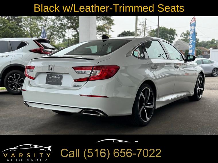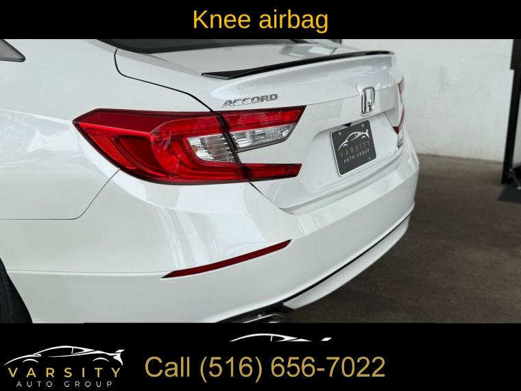 2021 Honda Accord Sport Special Edition, Platinum White Pearl, Black w/Leather-Trimmed Seats, Clean CARFAX, Black w/Leather-Trimmed Seats, 4-Wheel Disc Brakes, 8 Speakers, ABS brakes, Adaptive Cruise Control: Adaptive Cruise Control (ACC) with Low-Speed Follow, Air Conditioning, Alloy wheels, AM/FM radio, Apple CarPlay/Android Auto, Auto High-beam Headlights, Automatic temperature control, Black Chrome Grille Accent, Black Valve Stem Caps, Brake assist, Bumpers: body-color, Delay-off headlights, Driver door bin, Driver vanity mirror, Dual front impact airbags, Dual front side impact airbags, Electronic Stability Control, Emergency communication system: HondaLink, Exterior Parking Camera Rear, Forward collision: Collision Mitigation Braking System (CMBS) + FCW mitigation, Four wheel independent suspension, Front anti-roll bar, Front Bucket Seats, Front Center Armrest, Front dual zone A/C, Front fog lights, Front reading lights, Fully automatic headlights, Heated door mirrors, Heated Front Bucket Seats, Heated front seats, Illuminated entry, Knee airbag, Lane Departure Warning System, Leather Shift Knob, Leather steering wheel, Leather-Trimmed Seats, Low tire pressure warning, Occupant sensing airbag, Outside temperature display, Overhead airbag, Overhead console, Panic alarm, Passenger door bin, Passenger vanity mirror, Power door mirrors, Power driver seat, Power passenger seat, Power steering, Power windows, Radio data system, Radio: 180-Watt AM/FM Audio System, Rear anti-roll bar, Rear seat center armrest, Rear window defroster, Remote keyless entry, Security system, Speed control, Speed-sensing steering, Speed-Sensitive Wipers, Split folding rear seat, Spoiler, Steering wheel mounted audio controls, Tachometer, Telescoping steering wheel, Tilt steering wheel, Traction control, Trip computer, Variably intermittent wipers, Wheels: 19" Machine-Finished Alloy w/Black Inserts. Platinum White Pearl 2021 Honda Accord Sport Special Edition FWD CVT 1.5T I4 DOHC 16V Turbocharged VTEC 29/35 City/Highway MPG