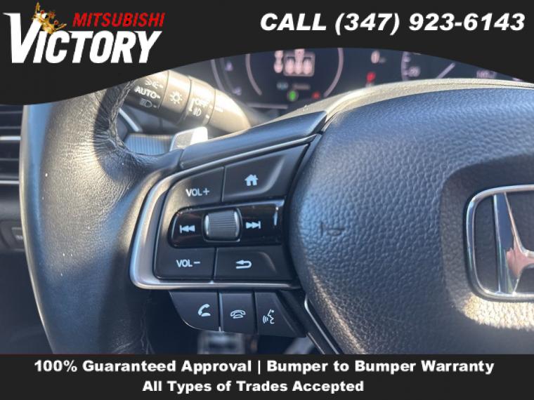 Wheels: 19" Machine-Finished Alloy w/Black Inserts, Heated Front Bucket Seats, Leather-Trimmed Seats, Radio: 180-Watt AM/FM Audio System, 4-Wheel Disc Brakes, Adaptive Cruise Control: Adaptive Cruise Control (ACC) with Low-Speed Follow, Apple CarPlay/Android Auto, Emergency communication system: HondaLink, Forward collision: Collision Mitigation Braking System (CMBS) + FCW mitigation, Auto High-beam Headlights, Exterior Parking Camera Rear, Speed-Sensitive Wipers, Lane Departure Warning System, 8 Speakers, Front beverage holders, Variably intermittent wipers, Trip computer, Traction control, Tilt steering wheel, Telescoping steering wheel, Steering wheel mounted audio controls, Split folding rear seat, Speed-sensing steering, Speed control, Security system, Remote keyless entry, Rear window defroster, Rear seat center armrest, Rear anti-roll bar, Radio data system, Power windows, Power steering, Power passenger seat, Power driver seat, Power door mirrors, Passenger vanity mirror, Passenger door bin, Panic alarm, Overhead console, Overhead airbag, Outside temperature display, Occupant sensing airbag, Low tire pressure warning, Leather steering wheel, Knee airbag, Illuminated entry, Heated front seats, Heated door mirrors, Fully automatic headlights, Front reading lights, Front fog lights, Front dual zone A/C, Front anti-roll bar, Four wheel independent suspension, Dual front side impact airbags, Dual front impact airbags, Driver vanity mirror, Driver door bin, Delay-off headlights, Bumpers: body-color, Brake assist, Automatic temperature control, Alloy wheels, AM/FM radio, ABS brakes, Tachometer, Spoiler, Leather Shift Knob, Front Center Armrest, Front Bucket Seats, Electronic Stability Control, Air Conditioning