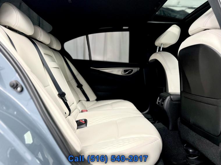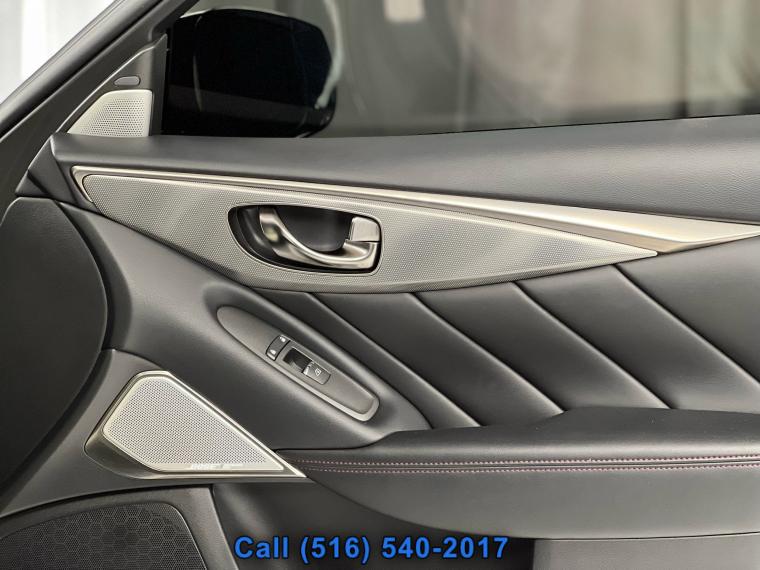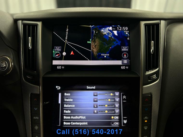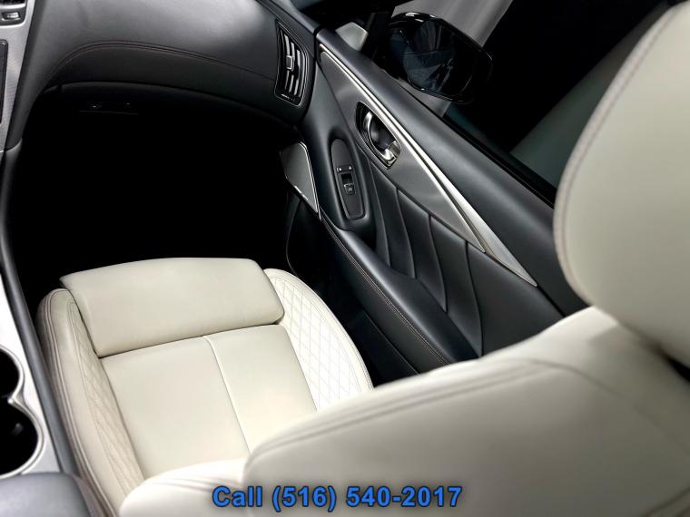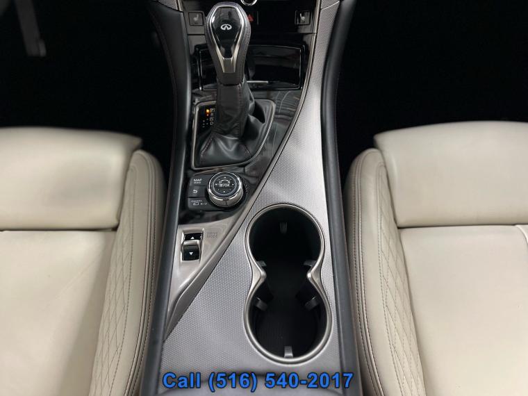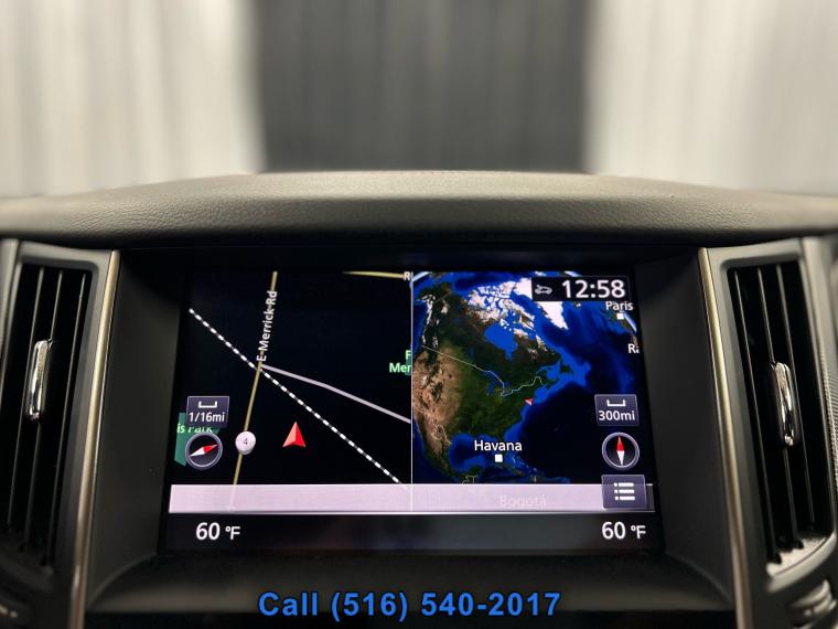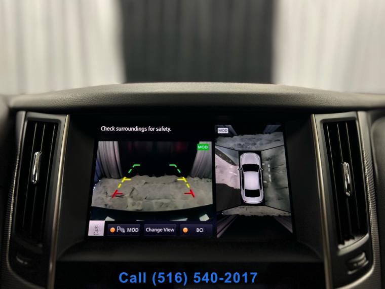 Sunroof/Moonroof, Navigation System, Leather Seats, Heated Seats, Bluetooth, Backup Camera, Moonroof / Sunroof: anti-trapping one-touch open/close, power glass, sliding sunshade, tilt/slide, Driver seat: heated, Driver seat power adjustments: height lumbar, reclining, 10, Front headrests: adjustable 2, Front seat type: sport bucket, Passenger seat: heated, Passenger seat power adjustments: height reclining, 8, Rear headrests: adjustable 3, Rear seat folding: split, Rear seat type: 60-40 split bench, Upholstery: semi-aniline leather, Upholstery accents: contrast stitching, ABS: 4-wheel, Braking assist: , Cornering brake control: , Electronic brakeforce distribution: , Front brake diameter: 14.0, Front brake type: ventilated disc, Front brake width: 1.3, Painted brake calipers: , Power brakes: , Premium brakes: , Rear brake diameter: 13.8, Rear brake type: ventilated disc, Rear brake width: 0.8, Alternator: 170 amps, Battery: maintenance-free, Battery saver: , Daytime running lights: LED, Exterior entry lights: approach lamps, Front fog lights: LED, Headlights: LED auto delay off, auto on/off, Taillights: LED, Automatic emergency braking: front, Blind spot safety: sensor/alert, Camera system: surround view, Child safety door locks: , Child seat anchors: LATCH system, Cross traffic alert: rear, Crumple zones: front rear, Emergency interior trunk release: , Impact sensor: alert system, Lane deviation sensors: , Pre-collision warning system: audible warning visual warning, Rearview monitor: in dash, Safety brake pedal system: , Airbag deactivation: occupant sensing passenger, Front airbags: dual, Side airbags: front, Side curtain airbags: front rear, Side mirror adjustments: manual folding power, reverse gear tilt, Side mirrors: auto-dimming heated, integrated turn signals, Front wipers: rain sensing speed sensitive, variable intermittent, Power windows: remotely operated safety reverse, Solar-tinted glass: , Window defogger: rear, Anti-theft system: alarm vehicle immobilizer, Power door locks: anti-lockout auto-locking, Steering ratio: 16.7, Turns lock-to-lock: 2.90, Emergency locking retractors: front rear, Front seatbelts: 3-point, Rear seatbelts: 3-point, Seatbelt force limiters: front, Seatbelt pretensioners: front, Seatbelt warning sensor: front, 4WD type: on demand, Axle ratio: 3.13, Drive mode selector: , Active suspension: , Front shock type: gas, Front spring type: coil, Front stabilizer bar: , Front struts: , Front suspension classification: independent, Front suspension type: double wishbone, Rear shock type: gas, Rear spring type: coil, Rear stabilizer bar: , Rear suspension classification: independent, Rear suspension type: multi-link, Suspension control: electronic, Electronic messaging assistance: voice operated with read function, Hands-free phone call integration: voice operated, Navigation data: real time traffic, Navigation system: memory card touch screen display, voice operated, Smart device app compatibility: INFINITI InTouch, Wi-Fi: hotspot, Wireless data link: Bluetooth, Antenna type: diversity mast, Auxiliary audio input: Bluetooth USB, iPod/iPhone, jack, In-Dash CD: MP3 Playback single disc, Premium brand: Bose, Radio: AM/FM HD radio, touch screen display, voice operated, Radio data system: , Satellite radio: SiriusXM, Speed sensitive volume control: , Subwoofer: 2, Surround sound: 5.1, Total speakers: 14, Run flat tires: , Tire Pressure Monitoring System: , Tire type: all season performance, Wheels: painted aluminum alloy, Clock: , Compass: , Digital odometer: , External temperature display: , Fuel economy display: MPG range, Gauge: tachometer, Multi-function display: , Trip odometer: , Warnings and reminders: low fuel level, Air filtration: , Front air conditioning: automatic climate control, Front air conditioning zones: dual, Rear vents: second row, Armrests: rear center folding with pass-thru rear center with cupholders, Center console trim: simulated carbon fiber, Dash trim: simulated carbon fiber, Door sill trim: aluminum, Door trim: simulated carbon fiber, Floor mat material: carpet, Floor material: carpet, Floor mats: front rear, Foot pedal trim: aluminum, Heated steering wheel: , Interior accents: carbon fiber, Shift knob trim: aluminum leather, Steering wheel trim: leather, Door handle color: body-color with chrome accents, Exhaust: dual tip, Exhaust tip color: polished aluminum, Front bumper color: body-color, Grille color: black, Mirror color: black, Rear bumper color: body-color, Rocker panel color: chrome accents, Window trim: black, Adaptive cruise control: , Ambient lighting: , Assist handle: front rear, Cargo area light: , Center console: front console with armrest and storage, Courtesy lights: door, Cupholders: front rear, Easy entry: power driver seat power steering wheel, Memorized settings: 2 driver audio system, climate control, driver seat, side mirrors, steering wheel, Multi-function remote: panic alarm proximity entry system, trunk release, vehicle and key memory, One-touch windows: 4, Overhead console: front, Power outlet(s): 12V front USB front, Power steering: variable/speed-proportional, Power windows: lockout button, Push-button start: , Reading lights: front rear, Rearview mirror: auto-dimming, Steering wheel: power tilt and telescopic, Steering wheel mounted controls: audio cruise control, multi-function, paddle shifter, phone, voice control, Storage: door pockets front seatback, sunglasses holder, Universal remote transmitter: Homelink - garage door opener, Vanity mirrors: dual illuminating, Connected in-car apps: Google POIs Google search, SiriusXM Movie Listing, SiriusXM Travel Link, SiriusXM Weather, Infotainment: InTouch, Infotainment screen size: 7 in. and 8 in. (dual), Smartphone integration: Android Auto Apple CarPlay, Hill holder control: , Stability control: , Traction control: