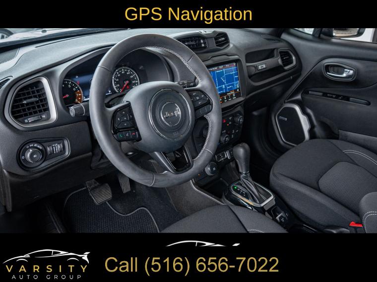 GPS Navigation, Quick Order Package 2XY 80th Edition, Sun & Sound Group (DISC), 6 Speakers, AM/FM radio: SiriusXM, HD Radio, Kenwood Premium Audio System, Radio data system, Radio: Uconnect 4 w/7" Display, Radio: Uconnect 4C Nav w/8.4" Display, Air Conditioning, Automatic temperature control, Front dual zone A/C, Rear window defroster, Power steering, Power windows, Remote keyless entry, Steering wheel mounted audio controls, Four wheel independent suspension, Gloss Black Steering Wheel Bezel, Normal Duty Suspension, Traction control, 4-Wheel Disc Brakes, ABS brakes, Anti-whiplash front head restraints, Dual front impact airbags, Dual front side impact airbags, Emergency communication system: SiriusXM Guardian, Front anti-roll bar, Knee airbag, Low tire pressure warning, Occupant sensing airbag, Overhead airbag, Rear anti-roll bar, Dual-Pane Panoramic Power Sunroof, Brake assist, Electronic Stability Control, ParkView Rear Back-Up Camera, Delay-off headlights, Front fog lights, Fully automatic headlights, Panic alarm, Security system, Speed control, Accent Color Exterior Mirrors, Granite Crystal Jeep Badge, Heated door mirrors, Jeep 80th Anniversary Instrumental Panel Badge, Manuf Statement of Origin, Power door mirrors, Protective Clear Plastic Film - 2 (DISC), Roof rack: rails only, Satin Granite Exterior Accents, Spoiler, 1-Year SiriusXM Guardian Trial, 5-Year SiriusXM Traffic Service, 5-Year SiriusXM Travel Link Service, 8.4" Touchscreen Display, 80th Edition Premium Cloth Bucket Seats, Apple CarPlay/Android Auto, Berber Floor Mats w/80th Anniversary Tag, Black Headliner, Compass, Driver door bin, Driver vanity mirror, For Details, Visit DriveUconnect.com, Front reading lights, Illuminated entry, Jeep 80th Anniversary Edition, Outside temperature display, Passenger vanity mirror, SiriusXM Traffic Plus, SiriusXM Travel Link, Tachometer, Telescoping steering wheel, Tilt steering wheel, Trip computer, Voltmeter, Front Bucket Seats, Front Center Armrest, Manual Adjust 4-Way Front Passenger Seat, Premium Cloth Bucket Seats, Split folding rear seat, Passenger door bin, Satin Granite Roof Rails, 17" x 7.0" Aluminum Wheels, Alloy wheels, Wheels: 19" x 7.5" Granite Painted Aluminum, Rear window wiper, Variably intermittent wipers, 3.734 Final Drive Ratio, The Price you See, is the Price You Pay!!!, 2021 Jeep Renegade 80th Edition, Granite Crystal Metallic Clearcoat, 4WD, 1 Owner, Clean CARFAX, Low Miles