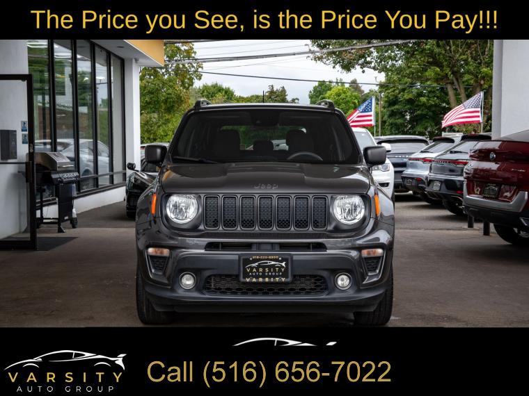 The Price you See, is the Price You Pay!!!, 2021 Jeep Renegade 80th Edition, Granite Crystal Metallic Clearcoat, 4WD, 1 Owner, Clean CARFAX, Low Miles, 1-Year SiriusXM Guardian Trial, 17" x 7.0" Aluminum Wheels, 3.734 Final Drive Ratio, 4-Wheel Disc Brakes, 5-Year SiriusXM Traffic Service, 5-Year SiriusXM Travel Link Service, 6 Speakers, 8.4" Touchscreen Display, 80th Edition Premium Cloth Bucket Seats, ABS brakes, Accent Color Exterior Mirrors, Air Conditioning, Alloy wheels, AM/FM radio: SiriusXM, Anti-whiplash front head restraints, Apple CarPlay/Android Auto, Automatic temperature control, Berber Floor Mats w/80th Anniversary Tag, Black Headliner, Brake assist, Compass, Delay-off headlights, Driver door bin, Driver vanity mirror, Dual front impact airbags, Dual front side impact airbags, Dual-Pane Panoramic Power Sunroof, Electronic Stability Control, Emergency communication system: SiriusXM Guardian, For Details, Visit DriveUconnect.com, Four wheel independent suspension, Front anti-roll bar, Front Bucket Seats, Front Center Armrest, Front dual zone A/C, Front fog lights, Front reading lights, Fully automatic headlights, Gloss Black Steering Wheel Bezel, GPS Navigation, Granite Crystal Jeep Badge, HD Radio, Heated door mirrors, Illuminated entry, Jeep 80th Anniversary Edition, Jeep 80th Anniversary Instrumental Panel Badge, Kenwood Premium Audio System, Knee airbag, Low tire pressure warning, Manual Adjust 4-Way Front Passenger Seat, Manuf Statement of Origin, Normal Duty Suspension, Occupant sensing airbag, Outside temperature display, Overhead airbag, Panic alarm, ParkView Rear Back-Up Camera, Passenger door bin, Passenger vanity mirror, Power door mirrors, Power steering, Power windows, Premium Cloth Bucket Seats, Protective Clear Plastic Film - 2 (DISC), Quick Order Package 2XY 80th Edition, Radio data system, Radio: Uconnect 4 w/7" Display, Radio: Uconnect 4C Nav w/8.4" Display, Rear anti-roll bar, Rear window defroster, Rear window wiper, Remote keyless entry, Roof rack: rails only, Satin Granite Exterior Accents, Satin Granite Roof Rails, Security system, SiriusXM Traffic Plus, SiriusXM Travel Link, Speed control, Split folding rear seat, Spoiler, Steering wheel mounted audio controls, Sun & Sound Group (DISC), Tachometer, Telescoping steering wheel, Tilt steering wheel, Traction control, Trip computer, Variably intermittent wipers, Voltmeter, Wheels: 19" x 7.5" Granite Painted Aluminum. Granite Crystal Metallic Clearcoat 2021 Jeep Renegade 80th Edition 4WD 9-Speed 948TE Automatic 2.4L I4 Odometer is 21058 miles below market average! 21/29 City/Highway MPG