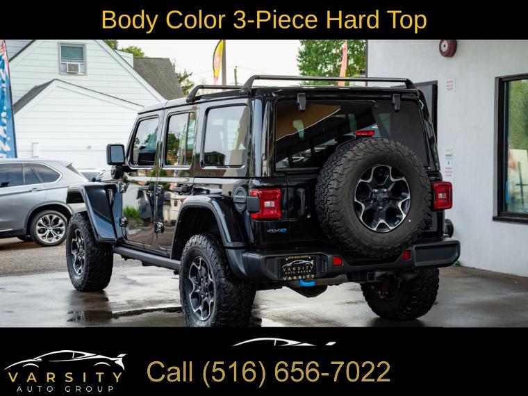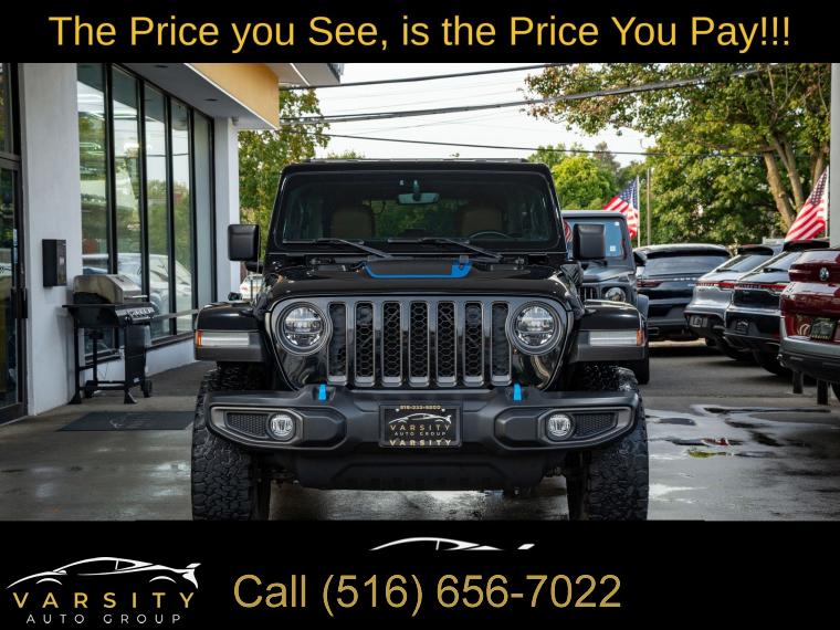 The Price you See, is the Price You Pay!!!, 2.0L I4 DOHC, 4-Wheel Disc Brakes, 4.10 Rear Axle Ratio, 9 Speakers, ABS brakes, Air Conditioning, Alloy wheels, AM/FM radio: SiriusXM, Apple CarPlay/Android Auto, Auto-dimming Rear-View mirror, Automatic temperature control, Body Color 3-Piece Hard Top, Body Color Fender Flares, Brake assist, Cold Weather Group, Compass, Delay-off headlights, Driver door bin, Driver vanity mirror, Dual front impact airbags, Dual front side impact airbags, Electronic Stability Control, Emergency communication system: SiriusXM Guardian, Freedom Panel Storage Bag, Front anti-roll bar, Front dual zone A/C, Front fog lights, Front License Plate Bracket, Front reading lights, Full Speed Forward Collision Warning Plus, Fully automatic headlights, Garage door transmitter, Heated door mirrors, Heated Front Seats, Heated Steering Wheel, Illuminated entry, Integrated roll-over protection, Leather steering wheel, Low tire pressure warning, Navigation System, Occupant sensing airbag, Outside temperature display, Panic alarm, ParkView Rear Back-Up Camera, Performance Suspension, Power door mirrors, Power steering, Power windows, Quick Order Package 29V, Radio data system, Radio: Uconnect 4C Nav w/8.4" Display, Rear anti-roll bar, Rear Window Defroster, Rear Window Wiper/Washer, Remote keyless entry, Remote Proximity Keyless Entry, Remote Start System, Security system, Speed control, Steering wheel mounted audio controls, Traction control, Variably intermittent wipers, Wheels: 17" x 7.5" Machined/Painted Black. Black Clearcoat 2021 Jeep Wrangler Unlimited Rubicon 4xe 4WD 8-Speed Automatic 2.0L I4 DOHC