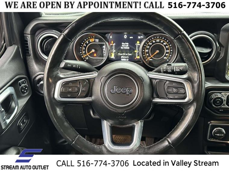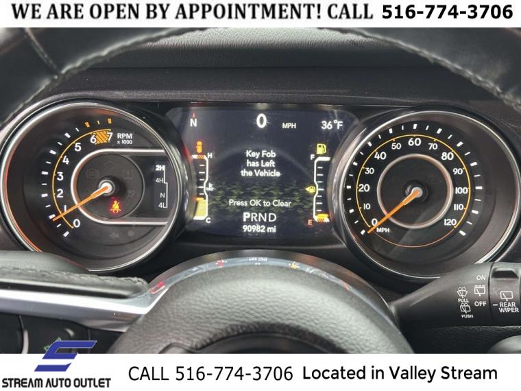 GPS Navigation, 8.4" Radio & Premium Audio Group, Altitude Package, Cold Weather Group, Dual Top Group, Quick Order Package 22L Altitude, Body Color 3-Piece Hard Top, 8 Speakers, Alpine Premium Audio System, AM/FM radio: SiriusXM, Apple CarPlay, GPS Antenna Input, HD Radio, Radio data system, Radio: Uconnect 4 w/7" Display, Radio: Uconnect 4C Nav w/8.4" Display, Air Conditioning, Automatic temperature control, Front dual zone A/C, Rear Window Defroster, Power steering, Power windows, Remote keyless entry, Steering wheel mounted audio controls, Heavy Duty Suspension w/Gas Shocks, Traction control, 4-Wheel Disc Brakes, ABS brakes, Dual front impact airbags, Dual front side impact airbags, Front anti-roll bar, Integrated roll-over protection, Low tire pressure warning, Occupant sensing airbag, Rear anti-roll bar, Remote Proximity Keyless Entry, Remote Start System, Brake assist, Electronic Stability Control, ParkView Rear Back-Up Camera, Delay-off headlights, Front fog lights, Fully automatic headlights, Panic alarm, Security system, Speed control, Aux Battery, Stop-Start Dual Battery System, Black Trail Rated Badge, Body Color Grille w/Gloss Black Rings, Front License Plate Bracket, Heated door mirrors, Matte Black Jeep Badge, Mold In Color Bumper w/Gloss Black, Non-Lock Fuel Cap w/o Discriminator, Power door mirrors, Premium Black Sunrider Soft Top w/Dual Top Group, 1-Year SiriusXM Guardian Trial, 4G LTE Wi-Fi Hot Spot, 5-Year SiriusXM Traffic Service, 5-Year SiriusXM Travel Link Service, 8.4" Touchscreen Display, Apple CarPlay/Android Auto, Auto-Dimming Rear-View Mirror, Black Interior Accents, Compass, Driver door bin, Driver vanity mirror, Emergency/Assistance Call, For Details, Visit DriveUconnect.com, Front reading lights, Garage door transmitter, Google Android Auto, Heated Steering Wheel, Illuminated entry, Integrated Voice Command w/Bluetooth, Leather steering wheel, Leather Wrapped Park Brake Handle, Leather Wrapped Shift Knob, Manufacturer's Statement of Origin, MOPAR All-Weather Floor Mats (DISC), MOPAR Hardtop Headliner, Outside temperature display, Passenger vanity mirror, Rear reading lights, SiriusXM Traffic Plus, SiriusXM Travel Link, Tachometer, Telescoping steering wheel, Tilt steering wheel, Trip computer, Voltmeter, Wizard Black Instrument Panel Bezels, Cloth Low-Back Bucket Seats, Front Bucket Seats, Heated Front Seats, Leather Trimmed Bucket Seats, Split folding rear seat, Freedom Panel Storage Bag, Front Center Armrest w/Storage, Passenger door bin, Alloy wheels, Wheels: 18" x 7.5" Gloss Black Aluminum, Wheels: 18" x 7.5" Polished w/Gray Spokes, Rear Window Wiper/Washer, Variably intermittent wipers, 3.45 Rear Axle Ratio, * NYS INSPECTION INCLUDED *, * FULL INTERIOR / EXTERIOR DETAIL *, * BLUETOOTH *, * LIMITED NYS LEMON LAW WARRANTY INCLUDED *, *FRESH OIL CHANGE *, * 150 MULTI POINT INSPECTION *
