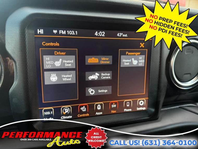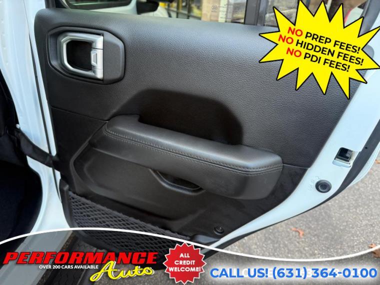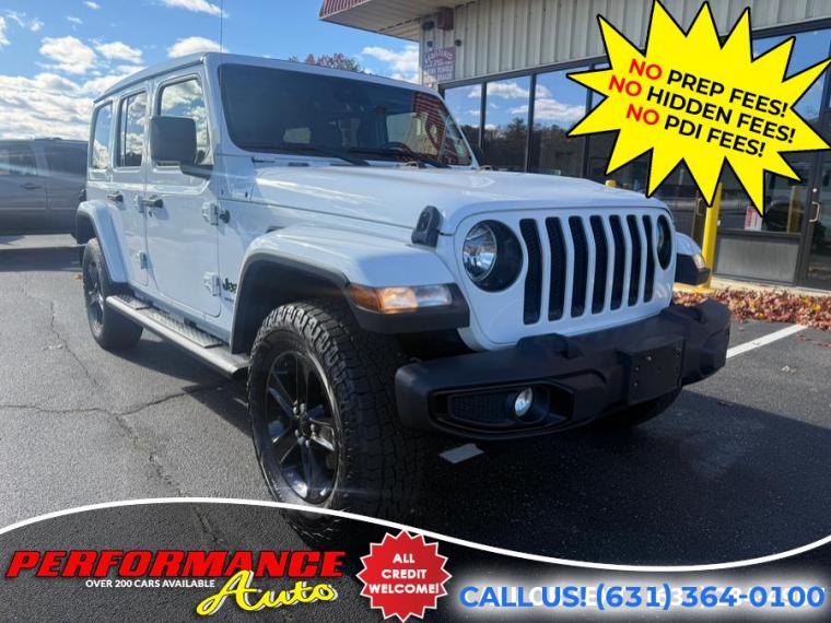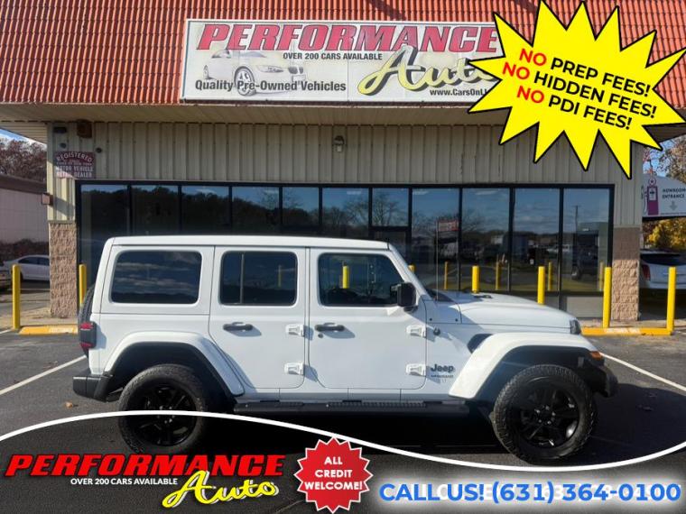 Loaded! This is the right optioned Sahara! Altitude 4x4! Loaded with Options! Sky One Touch Power Top! Keyless Entry! Safety Group! Advanced Safety Group! 3.6L V6 Engine! 8 Speed Automatic! Premium Audio Group and 8.4 Inch Uconnect! Cold Weather Package! Heated Front Seats! Remote Starter! 25L Package with Gloss Black Wheels! and More Options! Runs and Drives Great! Come in for a Test Drive! REMEMBER THE PERFORMANCE AUTO DIFFERENCE - NO PREP FEES! NO HIDDEN FEES! With apologies to all our customers, past and future: All of our competitors advertise cars using price structures that get their cars seen online, while no one sees ours. And so, after 25 years of business, we have to experiment with THEIR system. Therefore our advertised prices on third-party advertisers reflect a $2500 down payment or equivalent trade. It is NOT a HIDDEN FEE: we are completely up front and honest about why we have to try it. Our website clearly states the pricing on every vehicle. Third Party advertisers like Carfax, Cargurus and Autotrader etc. reward this price structure with better placement and badges. We have been asking third party advertisers for many years to give us a level playing field. We always succeed on a level playing field. Our competitors have downpayments between $2500-$9000 or even a % of price, then add hidden fees or require financing through them. Some dealers will not list a downpayment in their ads and you only find out when you go to see the vehicle. With us, financing is not required, but if you prefer to, we work with many banks to get you the best terms. We are sorry for any inconvenience, but pure pricing placed our vehicles at the bottom of search lists. We had no choice but to try advertising their way so that you can at least see our inventory, and hopefully we will do business. We have been selling quality cars with great reviews for 25 years. Our reputation is our strongest quality. We will do everything we can to satisfy you. It is no accident that 30% of our customers are repeat business.