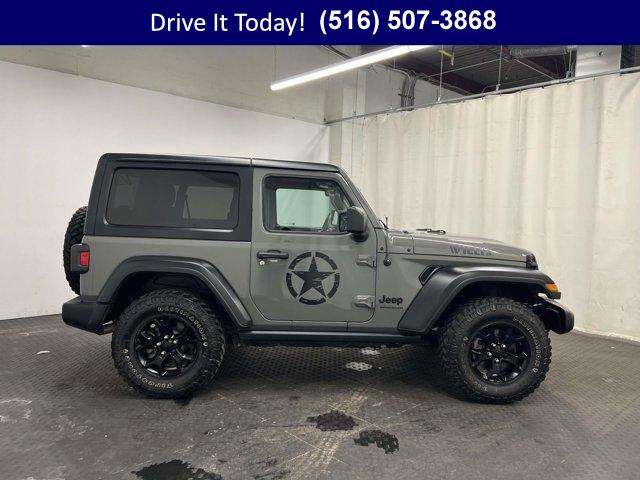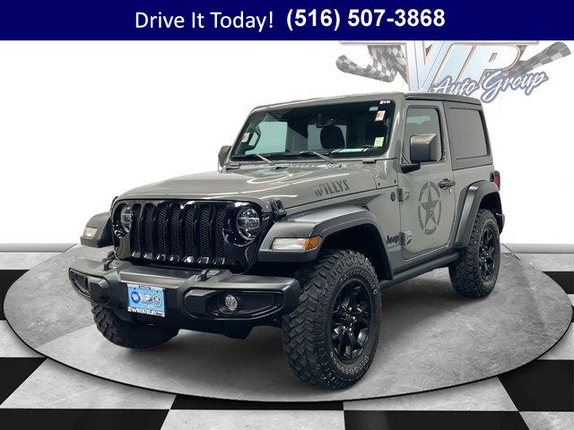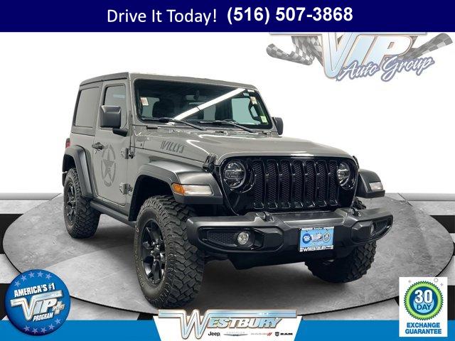 Trail-ready 4WD capability meets easy everyday comfort in this 2021 Jeep Wrangler 2-door Sport Utility. With only 24,055 miles, it has low miles for its age, and the Willys package adds purposeful style and hardware for confidence on sand, snow, and weekend trails. Finished in Sting-Gray Clearcoat with Black cloth low-back bucket seats, it balances rugged toughness with the kind of refinement you appreciate in daily driving. The 8-speed automatic pairs smoothly with the capable 2.0L I4 DOHC for responsive performance around town or upstate getaways, while the Black 3-piece hard top keeps the cabin quiet and secure year round.Inside, comfort and usability take center stage. The Cold Weather Group brings heated front seats and a heated steering wheel, keeping you comfortable on frigid mornings. Automatic temperature control helps maintain a steady cabin climate, and deep tint sunscreen windows reduce glare. The rear defroster and wiper enhance all-season visibility. Outside, LED premium reflector headlamps and front LED fog lamps cut through darkness and bad weather, and the Willys details like a black grille, Willys hood decal, rock protection sill rails, and black 17 inch wheels look right at home on the beach or the trail.Stay connected with a Uconnect multimedia display featuring built-in GPS navigation, Apple CarPlay, Google Android Auto, HD Radio, SiriusXM, and a 4G LTE Wi-Fi hotspot. The Alpine Premium Audio System elevates your playlist, and the 7.0 inch TFT color display clusters key driving data front and center. Convenience comes standard with remote keyless entry, power heated mirrors, front one-touch down power windows, a universal garage door opener, auto-dimming rear-view mirror, and steering wheel media controls. ParkView Rear Back-Up Camera, Electronic Stability Control, traction control, ABS, automatic headlamps, security alarm, and Off-Road Info Pages round out a smart suite for daily confidence & more.This Wrangler has been lightly driven for its model year, giving you that sought-after combination of capability and longevity. It is set up for four seasons with a normal duty suspension, anti-spin differential rear axle, and a 3.45 rear axle ratio that deliver surefooted traction when conditions turn slippery.VIP+ ProgramEnjoy our exclusive VIP+ Program with Unlimited Oil and Filter changes for 1 year, then included with every factory maintenance thereafter. You also receive Complimentary NYS Inspections, Complimentary Loaner Cars, and Complimentary 24/7 Rescue and Towing. These benefits are For Life and Transferable, adding long-term value to your ownership.Purchase with confidence as a Jeep Certified Pre-Owned Vehicle (CPOV). Your Wrangler includes a 7-Year / 100,000-Mile Powertrain Limited Warranty, a thorough 125-Point Inspection, 24-Hour Roadside Assistance, Rental Car Allowance, and a CARFAX Vehicle History Report. It is certification done the right way for lasting peace of mind.More About UsEvery vehicle we sell is hand selected for quality and long-term reliability, then professionally reconditioned prior to sale so you can buy with confidence. Our certified vehicles meet strict standards, including brake life of no less than 50 percent. Count on our preparation, transparency, and commitment to your peace of mind. We are a proud member of the VIP Auto Group serving the community since 1957. We Will Satisfy You!If you?re looking for a used car on Long Island that is winter-ready, commuter-friendly, and built to hold its value, this certified Jeep Wrangler delivers. Whether your plans include weekend trailheads or a smoother city commute in New York, the combination of hard top practicality, heated amenities, LED visibility, and Willys hardware makes year-round driving safer, easier, and more enjoyable. It is the right answer for shoppers comparing an affordable used car or even cross-shopping a used truck in New York thanks to its authentic 4WD capability and durable build.New York shoppers are invited to call now, schedule a test drive, or learn more at WestburyJeep.com, where you can view up-to-date inventory and current pricing. This description and feature list are a general overview and may vary by vehicle. Please confirm equipment and availability with our team.