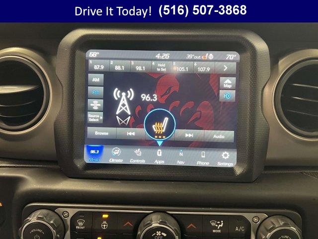 SIRIUSXM SATELLITE RADIO -inc: SiriusXM Radio Service, ENGINE: 2.0L I4 DOHC DI TURBO W/ESS, TRANSMISSION: 8-SPEED AUTOMATIC (850RE), 8.4 RADIO & PREMIUM AUDIO GROUP -inc: Google Android Auto Off-Road Info Pages SiriusXM Traffic Plus Alpine Premium Audio System SiriusXM Satellite Radio SiriusXM Radio Service USB Host Flip HD Radio Radio: Uconnect 4C Nav w/8.4 Display Rear View Auto Dim Mirror For Details Visit DriveUconnect.com Air Conditioning w/Auto Temp Control 220 Amp Alternator 1-Yr SiriusXM Guardian Trial 5-Year SiriusXM Travel Link Service GPS Navigation 5-Year SiriusXM Traffic Service SiriusXM Travel Link 4G LTE Wi-Fi Hot Spot GPS Antenna Input Emergency/Assistance Call 8.4 Touchscreen Display Apple CarPlay, CONVENIENCE GROUP -inc: Universal Garage Door Opener, COLD WEATHER GROUP -inc: Heated Steering Wheel Heated Front Seats, RADIO: UCONNECT 4C NAV W/8.4 DISPLAY, STING-GRAY CLEARCOAT, MOPAR PLASTIC DOOR SILL GUARDS, BLACK 3-PIECE HARD TOP -inc: Freedom Panel Storage Bag Rear Window Defroster Rear Window Wiper/Washer No Soft Top, BLACK CLOTH LOW-BACK BUCKET SEATS, TECHNOLOGY GROUP -inc: Google Android Auto Cluster 7.0 TFT Color Display SiriusXM Satellite Radio SiriusXM Radio Service USB Host Flip Integrated Center Stack Radio 7.0 Touchscreen Display Air Conditioning w/Auto Temp Control Radio: Uconnect 4 w/7 Display Apple CarPlay Air Filtering GPS Antenna Input, QUICK ORDER PACKAGE 22W WILLYS -inc: Engine: 2.0L I4 DOHC DI Turbo w/ESS Transmission: 8-Speed Automatic (850RE) Speed Sensitive Power Locks Leather Wrapped Steering Wheel 4-Wheel Drive Swing Gate Decal Black Grille MOPAR All-Weather Floor Mats Front 1-Touch Down Power Windows Wrangler Decal Security Alarm Willys Mold In Color Bumper w/Gloss Black Automatic Headlamps Black Trail Rated Badge Willys Hood Decal Rock Protection Sill Rails 97 MPH Vehicle Max Speed Calibration Power Heated Mirrors Matte Black Jeep Badge Remote Keyless Entry Sun Visors w/Illuminated Vanity Mirrors Front LED Fog Lamps LED Premium Reflector Headlamps, ALPINE PREMIUM AUDIO SYSTEM