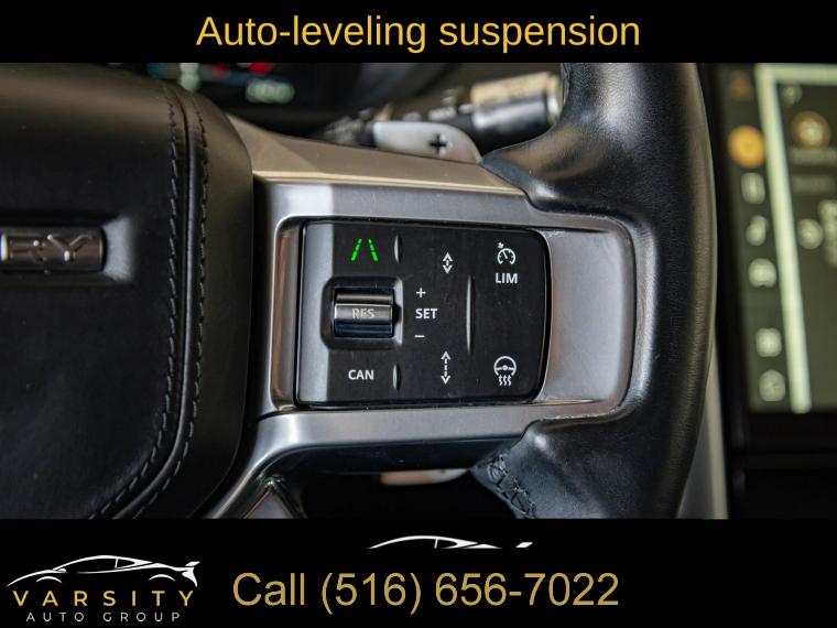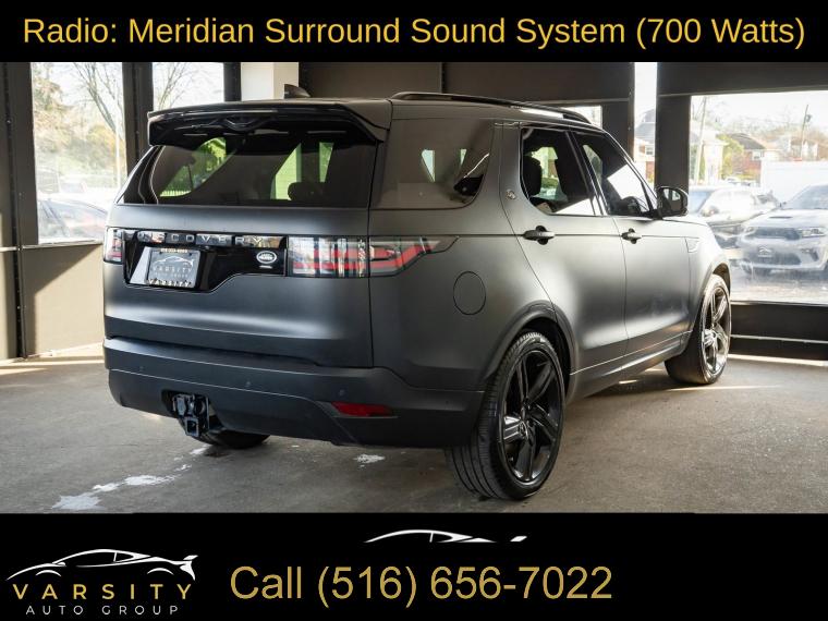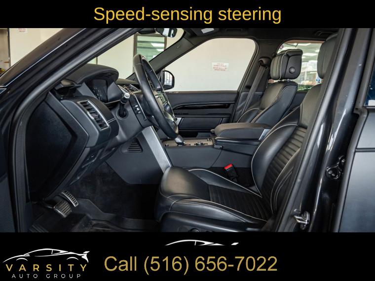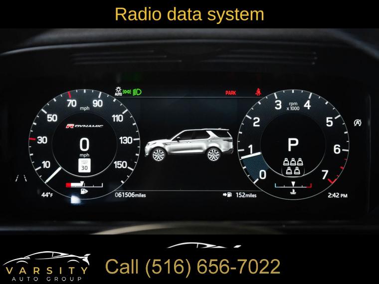 Navigation system: Connected Navigation PIVI Pro, 15 Speakers, AM/FM radio: SiriusXM, Radio data system, Radio: Meridian Surround Sound System (700 Watts), Weather band radio, Air Conditioning, Automatic temperature control, Front dual zone A/C, Rear window defroster, Memory seat, Power driver seat, Power steering, Power windows, Remote keyless entry, Steering wheel memory, Steering wheel mounted audio controls, Auto-leveling suspension, Four wheel independent suspension, Speed-sensing steering, Traction control, 4-Wheel Disc Brakes, ABS brakes, Dual front impact airbags, Dual front side impact airbags, Emergency communication system, Front anti-roll bar, Low tire pressure warning, Occupant sensing airbag, Overhead airbag, Power adjustable front head restraints, Rear anti-roll bar, Power moonroof, Power Liftgate, Brake assist, Electronic Stability Control, Auto High-beam Headlights, Delay-off headlights, Front fog lights, Fully automatic headlights, Headlight cleaning, Rear fog lights, Panic alarm, Security system, Speed control, Auto-dimming door mirrors, Bumpers: body-color, Heated door mirrors, Power door mirrors, Spoiler, Turn signal indicator mirrors, 20-Way Heated & Cooled Electric Memory Front Seats, Apple CarPlay & Android Auto, Auto tilt-away steering wheel, Auto-dimming Rear-View mirror, Compass, Driver door bin, Driver vanity mirror, Front reading lights, Garage door transmitter: HomeLink, Illuminated entry, Leather Shift Knob, Leather steering wheel, Outside temperature display, Overhead console, Passenger seat mounted armrest, Passenger vanity mirror, Rear reading lights, Rear seat center armrest, Tachometer, Telescoping steering wheel, Tilt steering wheel, Trip computer, 3rd row seats: split-bench, Driver's Seat Mounted Armrest, Front Bucket Seats, Front Center Armrest, Heated front seats, Heated rear seats, Power passenger seat, Split folding rear seat, Ventilated front seats, Windsor Leather Seat Trim, Passenger door bin, Alloy wheels, Wheels: 22" 5 Split-Spoke Gloss Dark Grey, Rain sensing wipers, Rear window wiper, Speed-Sensitive Wipers, Variably intermittent wipers, 3.55 Axle Ratio, 2021 Land Rover Discovery HSE R-Dynamic, Clean CARFAX