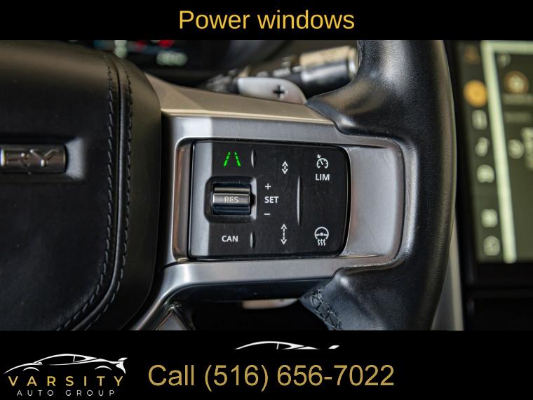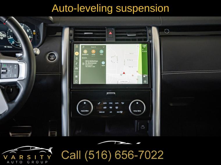Navigation system: Connected Navigation PIVI Pro, 15 Speakers, AM/FM radio: SiriusXM, Radio data system, Radio: Meridian Surround Sound System (700 Watts), Weather band radio, 3-Zone Climate Control, Air Conditioning, Automatic temperature control, Front dual zone A/C, Rear window defroster, Memory seat, Power driver seat, Power steering, Power windows, Remote keyless entry, Steering wheel memory, Steering wheel mounted audio controls, Auto-leveling suspension, Four wheel independent suspension, Speed-sensing steering, Traction control, 4-Wheel Disc Brakes, ABS brakes, Dual front impact airbags, Dual front side impact airbags, Emergency communication system, Front anti-roll bar, Low tire pressure warning, Occupant sensing airbag, Overhead airbag, Power adjustable front head restraints, Rear anti-roll bar, Power moonroof, Power Liftgate, Brake assist, Electronic Stability Control, Auto High-beam Headlights, Delay-off headlights, Front fog lights, Fully automatic headlights, Headlight cleaning, Rear fog lights, Panic alarm, Security system, Speed control, Auto-dimming door mirrors, Bumpers: body-color, Heated door mirrors, Power door mirrors, Spoiler, Turn signal indicator mirrors, 20-Way Heated & Cooled Electric Memory Front Seats, Apple CarPlay & Android Auto, Auto tilt-away steering wheel, Auto-dimming Rear-View mirror, Compass, Driver door bin, Driver vanity mirror, Front reading lights, Garage door transmitter: HomeLink, Illuminated entry, Leather Shift Knob, Leather steering wheel, Outside temperature display, Overhead console, Park Assist (DISC), Passenger seat mounted armrest, Passenger vanity mirror, Rear reading lights, Rear seat center armrest, Tachometer, Telescoping steering wheel, Tilt steering wheel, Trip computer, 3rd row seats: split-bench, Driver's Seat Mounted Armrest, Front Bucket Seats, Front Center Armrest, Heated front seats, Heated rear seats, Power passenger seat, Split folding rear seat, Ventilated front seats, Windsor Leather Seat Trim, Passenger door bin, Alloy wheels, Wheels: 22" 5 Split-Spoke Gloss Dark Grey, Rain sensing wipers, Rear window wiper, Speed-Sensitive Wipers, Variably intermittent wipers, 3.55 Axle Ratio, 2021 Land Rover Discovery HSE R-Dynamic, Clean CARFAX