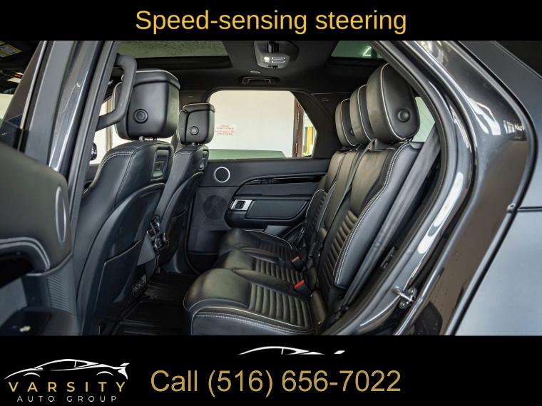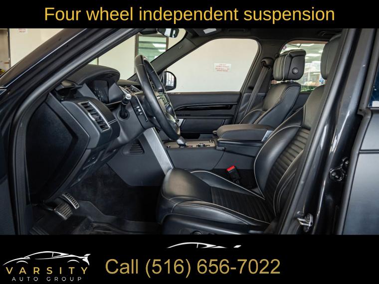 2021 Land Rover Discovery HSE R-Dynamic, Clean CARFAX, 15 Speakers, 20-Way Heated & Cooled Electric Memory Front Seats, 3-Zone Climate Control, 3.55 Axle Ratio, 3rd row seats: split-bench, 4-Wheel Disc Brakes, ABS brakes, Air Conditioning, Alloy wheels, AM/FM radio: SiriusXM, Apple CarPlay & Android Auto, Auto High-beam Headlights, Auto tilt-away steering wheel, Auto-dimming door mirrors, Auto-dimming Rear-View mirror, Auto-leveling suspension, Automatic temperature control, Brake assist, Bumpers: body-color, Compass, Delay-off headlights, Driver door bin, Driver vanity mirror, Driver's Seat Mounted Armrest, Dual front impact airbags, Dual front side impact airbags, Electronic Stability Control, Emergency communication system, Four wheel independent suspension, Front anti-roll bar, Front Bucket Seats, Front Center Armrest, Front dual zone A/C, Front fog lights, Front reading lights, Fully automatic headlights, Garage door transmitter: HomeLink, Headlight cleaning, Heated door mirrors, Heated front seats, Heated rear seats, Illuminated entry, Leather Shift Knob, Leather steering wheel, Low tire pressure warning, Memory seat, Navigation system: Connected Navigation PIVI Pro, Occupant sensing airbag, Outside temperature display, Overhead airbag, Overhead console, Panic alarm, Park Assist (DISC), Passenger door bin, Passenger seat mounted armrest, Passenger vanity mirror, Power adjustable front head restraints, Power door mirrors, Power driver seat, Power Liftgate, Power moonroof, Power passenger seat, Power steering, Power windows, Radio data system, Radio: Meridian Surround Sound System (700 Watts), Rain sensing wipers, Rear anti-roll bar, Rear fog lights, Rear reading lights, Rear seat center armrest, Rear window defroster, Rear window wiper, Remote keyless entry, Security system, Speed control, Speed-sensing steering, Speed-Sensitive Wipers, Split folding rear seat, Spoiler, Steering wheel memory, Steering wheel mounted audio controls, Tachometer, Telescoping steering wheel, Tilt steering wheel, Traction control, Trip computer, Turn signal indicator mirrors, Variably intermittent wipers, Ventilated front seats, Weather band radio, Wheels: 22" 5 Split-Spoke Gloss Dark Grey, Windsor Leather Seat Trim. Black 2021 Land Rover Discovery HSE R-Dynamic 4WD ZF 8-Speed Automatic 3.0L I6