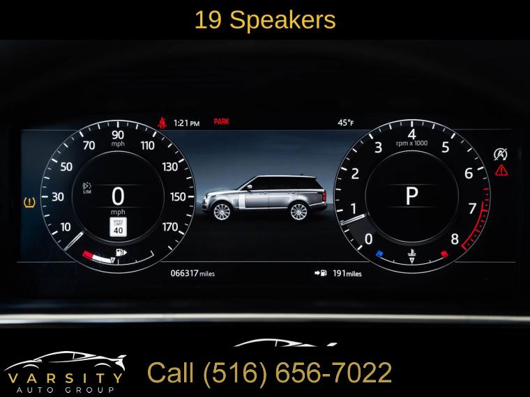 Navigation system: InControl Navigation Pro, 19 Speakers, AM/FM radio: SiriusXM, Premium audio system: Meridian, Radio data system, Radio: 825W Meridian Surround Sound System, Weather band radio, Air Conditioning, Automatic temperature control, Front dual zone A/C, Rear air conditioning, Rear dual zone A/C, Rear window defroster, Head restraints memory, Heads-Up Display, Memory seat, Power driver seat, Power steering, Power windows, Remote keyless entry, Steering wheel memory, Steering wheel mounted A/C controls, Steering wheel mounted audio controls, Adaptive suspension, Auto-leveling suspension, Four wheel independent suspension, Speed-sensing steering, Traction control, 4-Wheel Disc Brakes, ABS brakes, Anti-whiplash front head restraints, Dual front impact airbags, Dual front side impact airbags, Emergency communication system: InControl Protect, Front anti-roll bar, Low tire pressure warning, Occupant sensing airbag, Overhead airbag, Power adjustable front head restraints, Rear anti-roll bar, Power moonroof, Blind Spot Assist, Brake assist, Electronic Stability Control, Exterior Parking Camera Rear, Auto High-beam Headlights, Delay-off headlights, Front fog lights, Fully automatic headlights, Headlight cleaning, Rear fog lights, Panic alarm, Security system, Speed control, Auto-dimming door mirrors, Bumpers: body-color, Door auto-latch, Heated door mirrors, Power door mirrors, Turn signal indicator mirrors, 20-Way Htd/Cooled Front Bucket Seats, 360 Parking Aid, Apple CarPlay & Android Auto, Auto tilt-away steering wheel, Auto-dimming Rear-View mirror, Clear Exit Monitor, Compass, Driver Condition Monitor, Driver door bin, Driver vanity mirror, Front reading lights, Garage door transmitter: HomeLink, Genuine wood console insert, Genuine wood dashboard insert, Genuine wood door panel insert, Heated steering wheel, High-Speed Emergency Braking, Illuminated entry, Outside temperature display, Overhead console, Passenger seat mounted armrest, Passenger vanity mirror, Rear reading lights, Rear seat center armrest, Rear Traffic Monitor, Tachometer, Telescoping steering wheel, Tilt steering wheel, Traffic Sign Recognition & Adaptive Speed Limiter, Trip computer, Driver's Seat Mounted Armrest, Front Bucket Seats, Heated front seats, Heated rear seats, Perforated Windsor Leather Seat Trim, Power passenger seat, Split folding rear seat, Ventilated front seats, Front Center Armrest w/Storage, Passenger door bin, Alloy wheels, Wheels: 21" 7 Split-Spoke Gloss Silver, Rain sensing wipers, Rear window wiper, Speed-Sensitive Wipers, Variably intermittent wipers, 3.31 Axle Ratio, 2021 Land Rover Range Rover Westminster P525 HSE, One Owner, Clean CARFAX