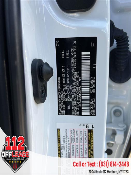 For more information on this 2021 Lexus NX, please call 112 Off Lease at (631) 353-6827 or with the contact form on this page. This vehicle's vin number is JTJSARDZ5M2262932 and is recorded as being in stock at 112 Off Lease at 2004 Route 112 in Medford. See all cars from this dealership.