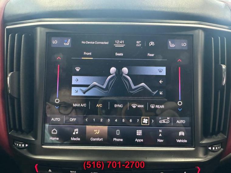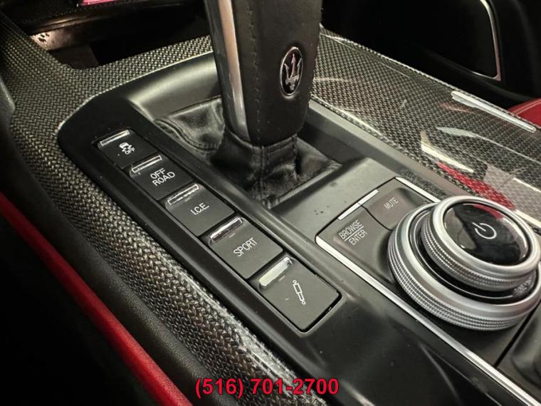 ABS, 4-Wheel Disc Brakes, 8-Speed A/T, A/C, A/T, Active Suspension, Adaptive Cruise Control, Adjustable Steering Wheel, Aerial View Display System, Air Suspension, Security System, All Wheel Drive, Aluminum Wheels, AM/FM Stereo, Transmission w/Dual Shift Mode, Automatic Headlights, Automatic Highbeams, Auxiliary Audio Input, Back-Up Camera, Blind Spot Monitor, Brake Assist, Bucket Seats, Cargo Shade, Child Safety Locks, Climate Control, Temporary Spare Tire, Cooled Front Seat(s), Cruise Control, Cruise Control Steering Assist, Daytime Running Lights, Driver Air Bag, Driver Illuminated Vanity Mirror, Driver Adjustable Lumbar, Driver Vanity Mirror, Multi-Zone A/C, Auto-Dimming Rearview Mirror, Stability Control, Fog Lamps, Front Collision Mitigation, Floor Mats, Gasoline Fuel, Hands-Free Liftgate, HD Radio, Headlights-Auto-Leveling, Heated Front Seat(s), Heated Mirrors, Integrated Turn Signal Mirrors, Intermittent Wipers, Keyless Entry, Keyless Start, Lane Departure Warning, Lane Keeping Assist, Leather Steering Wheel, LED Headlights, Locking/Limited Slip Differential, Mirror Memory, MP3 Capability, Navigation System, Telematics, Panoramic Roof, Pass-Through Rear Seat, Passenger Air Bag, Passenger Air Bag Sensor, Passenger Illuminated Visor Mirror, Passenger Adjustable Lumbar, Passenger Vanity Mirror, Power Door Locks, Power Mirror(s), Power Driver Seat, Power Folding Mirrors, Power Liftgate, Power Passenger Seat, Power Steering, Power Windows, Premium Sound System, Privacy Glass, Rain Sensing Wipers, Rear Bench Seat, Rear Defrost, Rear Head Air Bag, Rear Parking Aid, Rear Spoiler, Remote Engine Start, Remote Trunk Release, Requires Subscription, Satellite Radio, Seat Memory, Front Side Air Bag, Front Head Air Bag, Smart Device Integration, Steering Wheel Audio Controls, Generic Sun/Moonroof, Tire Pressure Monitor, Tires - Front Performance, Tires - Rear Performance, Traction Control, Trip Computer, Turbocharged, Universal Garage Door Opener, V6 Cylinder Engine, Variable Speed Intermittent Wipers, Immobilizer, WiFi Hotspot, Bluetooth Connection, Woodgrain Interior Trim, All-Season Tires, Aluminum Spare Wheel, Body-Colored Front Bumper w/Metal-Look Rub Strip/Fascia Accent and Chrome Bumper Insert, Body-Colored Power w/Tilt Down Heated Auto Dimming Side Mirrors w/Power Folding and Turn Signal Indicator, Body-Colored Rear Bumper w/Metal-Look Rub Strip/Fascia Accent, Body-Colored Wheel Well Trim, Chrome Door Handles, Chrome Grille, Chrome Side Windows Trim, Clearcoat Paint, Compact Spare Tire Mounted Inside Under Cargo, Cornering Lights, Deep Tinted Glass, Door Auto-Latch, Express Open/Close Sliding And Tilting Glass 1st And 2nd Row Sunroof w/Power Sunshade, Fixed Rear Window w/Fixed Interval Wiper and Defroster, Front And Rear Fog Lamps, Galvanized Steel/Aluminum Panels, Headlights-Automatic Highbeams, Laminated Glass, LED Brakelights, Lip Spoiler, Perimeter/Approach Lights, Power Liftgate Rear Cargo Access, Programmable Projector Beam Led Low/High Beam Auto-Leveling Directionally Adaptive Auto High-Beam Daytime Running Lights Preference Setting Headlamps w/Delay-Off, Speed Sensitive Rain Detecting Variable Intermittent Wipers, Tailgate/Rear Door Lock Included w/Power Door Locks, Tires: 19", Wheels: 19" Machine Polished Staggered Zefiro, 12-Way Heated Power Front Seats -inc: 2-position memory for driver, 2 Seatback Storage Pockets, 4 12V DC Power Outlets, 60-40 Folding Bench Front Facing Manual Reclining Fold Forward Seatback Rear Seat, Adaptive w/Traffic Stop-Go, Air Filtration, Cargo Area Concealed Storage, Cargo Space Lights, Carpet Floor Trim, Compass, Cruise Control w/Steering Wheel Controls, Day-Night Auto-Dimming Rearview Mirror, Delayed Accessory Power, Digital/Analog Appearance, Driver And Passenger Visor Vanity Mirrors w/Driver And Passenger Illumination, Driver And Passenger Auxiliary Mirror, Driver Foot Rest, Driver Information Center, Driver Seat, Fade-To-Off Interior Lighting, FOB Controls -inc: Cargo Access, Windows and Remote Start, Front And Rear Map Lights, Front Center Armrest and Rear Center Armrest w/Pass-Thru, Front Cigar Lighter(s), Front Cupholder, Full, Full Carpet Floor Covering -inc: Carpet Front And Rear Floor Mats, Full Floor Console w/Covered Storage, Mini Overhead Console and 4 12V DC Power Outlets, Gauges -inc: Speedometer, Odometer, Voltmeter, Oil Pressure, Engine Coolant Temp, Tachometer, Oil Temperature, Transmission Fluid Temp, Trip Odometer and Trip Computer, Heated Leather/Genuine Wood Steering Wheel, HomeLink Garage Door Transmitter, HVAC -inc: Underseat Ducts, Residual Heat Recirculation and Console Ducts, Illuminated Locking Glove Box, Immobilizer, Interior Trim -inc: Deluxe Sound Insulation, Genuine Wood/Metal-Look Instrument Panel Insert, Genuine Wood/Metal-Look Door Panel Insert, Genuine Wood Console Insert, Chrome/Metal-Look Interior Accents and Leather Upholstered Dashboard, Leather/Metal-Look Gear Shifter Material, Manual Anti-Whiplash Adjustable Front Head Restraints and Manual Adjustable Rear Head Restraints, Maserati Connect Tracker System, Memory Settings -inc: Door Mirrors and Steering Wheel, Outside Temp Gauge, Passenger Seat, Perimeter Alarm, Power 1st Row Windows w/Front And Rear 1-Touch Up/Down, Power Door Locks w/Autolock Feature, Power Fuel Flap Locking Type, Power Rear Windows and Fixed 3rd Row Windows, Power Tilt/Telescoping Steering Column, Proximity Key For Doors And Push Button Start, Rear Cupholder, Redundant Digital Speedometer, Refrigerated/Cooled Box Located In The Front Console, Driver / Passenger And Rear Door Bins, Remote Keyless Entry w/Integrated Key Transmitter and Illuminated Entry, Remote Releases -Inc: Proximity Cargo Access, Rigid Cargo Cover, Seats w/Leather Back Material, Trip Computer, Trunk/Hatch Auto-Latch, Valet Function, Ventilated Front Seats, Voice Activated Dual Zone Front Automatic Air Conditioning, Zegna Silk & Leather Upholstery -inc: full premium leather w/Zegna silk seat inserts, door panels, headliner