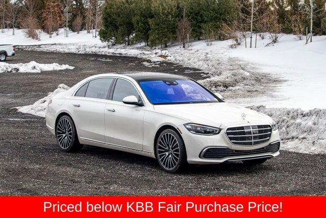 4MATIC®, Black Leather, 4-Wheel Disc Brakes, Adaptive suspension, Air Conditioning, Apple CarPlay®/Android Auto®, Auto High-beam Headlights, Burmester® 3D Surround Sound System, Four wheel independent suspension, HVAC memory, Memory seat, Navigation System, Power driver seat, Power moonroof: Panorama, Radio: MBUX w/Navigation, Rain sensing wipers, Rear window defroster, Remote keyless entry, Security system, SiriusXM Radio. Priced below KBB Fair Purchase Price! Clean CARFAX. 20/29 City/Highway MPG2021 Mercedes-Benz S-Class S 500 4MATIC® White S 500 4MATIC® 4MATIC® 9-Speed Automatic 3.0L V6 TurbochargedSpecial pricing ad/promotion is available to customers who reference such pricing and present the ad at the time of sale otherwise store list price applies. Buyer is responsible to verify options/packages. Any error voids the ad. Certified Pre-Owned program available. Same-day delivery In-stock units only. Dealer-installed accessories are extra. Dealer is not responsible for typographical errors. Every vehicle in inventory is equipped with LoJack at an additional cost. The special price expires at the midnight of the publication date. For return & exchange policy visit the website for details. All Prices will be honored as cash prices. Prices do not include the following fees: Doc Fee, tax, tags, DMV fees. Pre-installed LoJack, and Pre-Certification (vary between vehicles) Please visit or call the dealership for complete details.
