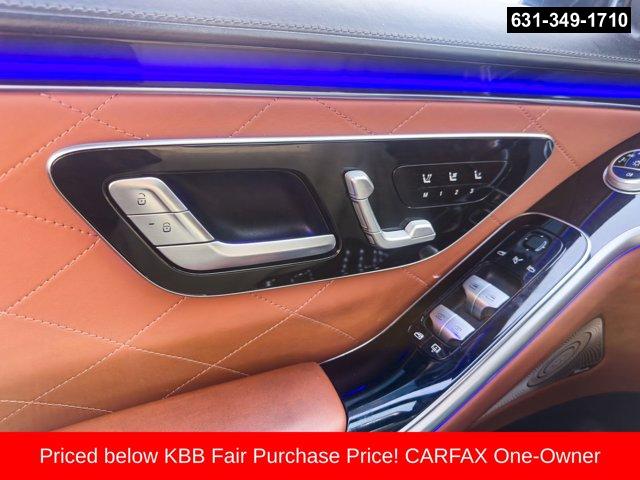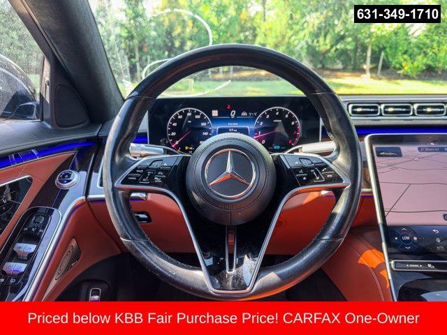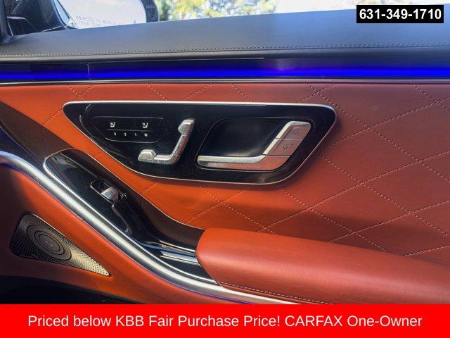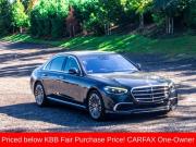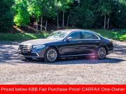 4MATIC®, Brown Leather, Active Multicontour Seats, Adaptive suspension, Android Auto®, Apple CarPlay®, Apple CarPlay®/Android Auto®, Brake assist, Burmester® 3D Surround Sound System, Electronic Stability Control, Four wheel independent suspension, Front Comfort Headrests, Front dual zone A/C, Front Heated Seats PLUS, HD-Radio, Head restraints memory, HVAC memory, Map Updates for 3 Years, MB Navigation, MBUX Voice Control, Memory seat, Nappa Leather Upholstery, Navigation System, Power adjustable front head restraints, Power adjustable rear head restraints, Power door mirrors, Power driver seat, Power Front Seats w/Memory, Power Lumbar Support, Power moonroof: Panorama, Power passenger seat, Power steering, Power windows, Premium audio system: MBUX, Radio data system, Radio: MBUX Multimedia System, Rear window defroster, Remote keyless entry, SiriusXM Radio, Smartphone Integration, Speed-sensing steering, Steering wheel memory, Steering wheel mounted audio controls, Traction control, Turn signal indicator mirrors, Ventilated Front Seats. Priced below KBB Fair Purchase Price! CARFAX One-Owner.2021 Mercedes-Benz S-Class S 580 4MATIC® Blue S 580 4MATIC® 4MATIC® 9-Speed Automatic 4.0L V8Special pricing ad/promotion is available to customers who reference such pricing and present the ad at the time of sale otherwise store list price applies. Buyer is responsible to verify options/packages. Any error voids the ad. Certified Pre-Owned program available. Same-day delivery In-stock units only. Dealer-installed accessories are extra. Dealer is not responsible for typographical errors. Every vehicle in inventory is equipped with LoJack at an additional cost. The special price expires at the midnight of the publication date. For return & exchange policy visit the website for details. All Prices will be honored as cash prices. Prices do not include the following fees: Doc Fee, tax, tags, DMV fees. Pre-installed LoJack, and Pre-Certification (vary between vehicles) Please visit or call the dealership for complete details.