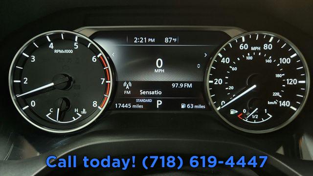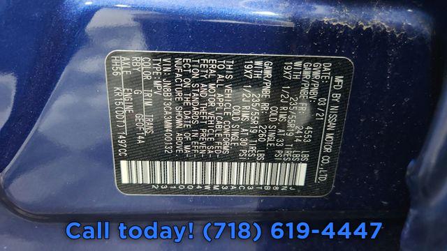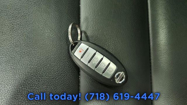 5.604 Axle Ratio, 19" Aluminum Alloy Wheels, Heated Front Bucket Seats, Leather-Appointed Seat Trim, AM/FM Radio, 4-Wheel Disc Brakes, NissanConnect featuring Apple CarPlay and Android Auto, Emergency communication system: NissanConnect Services, Auto High-beam Headlights, Exterior Parking Camera Rear, Speed-Sensitive Wipers, Auto-dimming Rear-View mirror, Front beverage holders, Variably intermittent wipers, Turn signal indicator mirrors, Trip computer, Traction control, Tilt steering wheel, Telescoping steering wheel, Steering wheel mounted audio controls, Split folding rear seat, Speed control, Security system, Roof rack: rails only, Remote keyless entry, Rear window wiper, Rear window defroster, Rear side impact airbag, Rear seat center armrest, Rear anti-roll bar, Rear air conditioning, Radio data system, Power windows, Power steering, Power passenger seat, Power moonroof, Power driver seat, Power door mirrors, Passenger vanity mirror, Passenger door bin, Panic alarm, Overhead console, Overhead airbag, Outside temperature display, Occupant sensing airbag, Memory seat, Low tire pressure warning, Leather steering wheel, Knee airbag, Illuminated entry, Heated steering wheel, Heated front seats, Heated door mirrors, Fully automatic headlights, Front reading lights, Front fog lights, Front dual zone A/C, Front anti-roll bar, Four wheel independent suspension, Dual front side impact airbags, Dual front impact airbags, Driver vanity mirror, Driver door bin, Delay-off headlights, Bumpers: body-color, Brake assist, Automatic temperature control, Alloy wheels, AM/FM radio, ABS brakes, Tachometer, Spoiler, Rear Parking Sensors, Power Liftgate, Front Center Armrest, Front Bucket Seats, Electronic Stability Control, Air Conditioning, 6 Speakers
