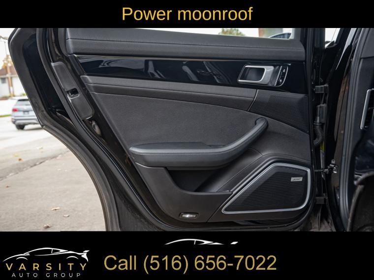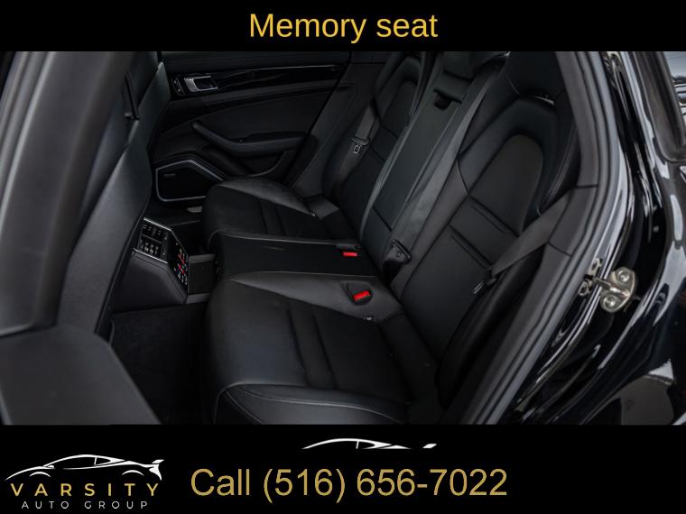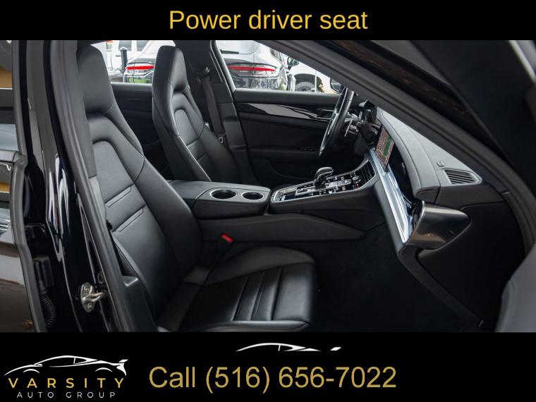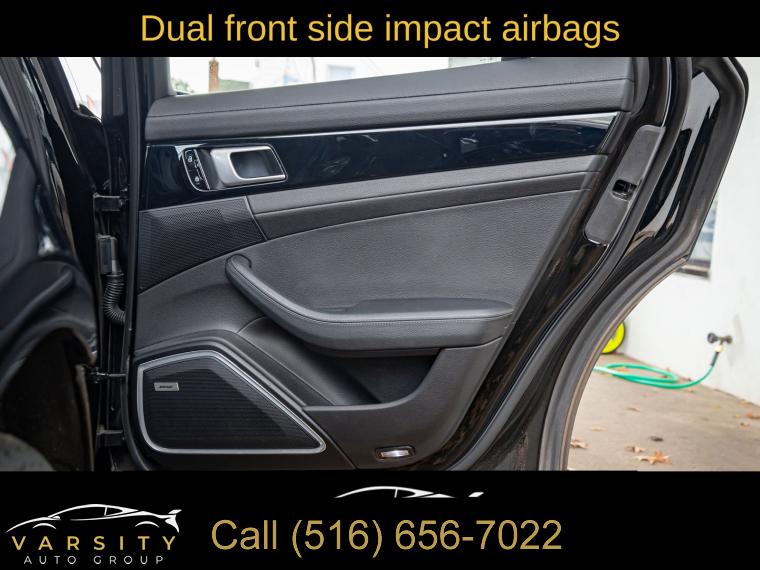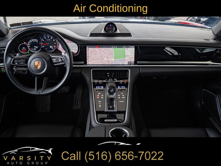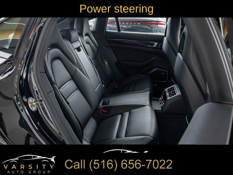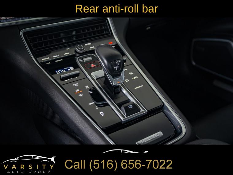 Navigation System, 10 Speakers, AM/FM radio: SiriusXM, Radio data system, Air Conditioning, Automatic temperature control, Front dual zone A/C, Rear window defroster, 8-Way Power Seats, Memory seat, Porsche Communication Management, Power driver seat, Power steering, Power windows, Remote keyless entry, Steering wheel mounted audio controls, Adaptive suspension, Four wheel independent suspension, Traction control, 4-Wheel Disc Brakes, ABS brakes, Dual front impact airbags, Dual front side impact airbags, Front anti-roll bar, Knee airbag, Low tire pressure warning, Occupant sensing airbag, Overhead airbag, Rear anti-roll bar, Rear side impact airbag, Power moonroof, Power Liftgate, Brake assist, Electronic Stability Control, Exterior Parking Camera Rear, Delay-off headlights, Fully automatic headlights, Rear fog lights, Panic alarm, Security system, Speed control, Auto-dimming door mirrors, Bumpers: body-color, Heated door mirrors, Power door mirrors, Spoiler, Apple CarPlay, Auto-dimming Rear-View mirror, Compass, Driver door bin, Driver vanity mirror, Front reading lights, Garage door transmitter: HomeLink, Illuminated entry, Leather Shift Knob, Leather steering wheel, Outside temperature display, Overhead console, Passenger vanity mirror, Rear reading lights, Rear seat center armrest, Tachometer, Telescoping steering wheel, Tilt steering wheel, Trip computer, Front Bucket Seats, Front Center Armrest, Heated front seats, Partial Leather Seat Trim, Power passenger seat, Split folding rear seat, Passenger door bin, Alloy wheels, Wheels: 19" Panamera, Rain sensing wipers, Variably intermittent wipers