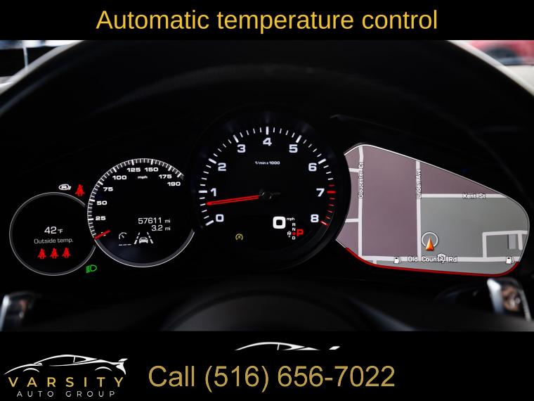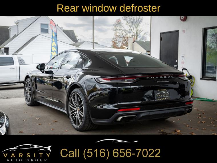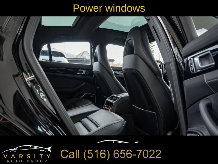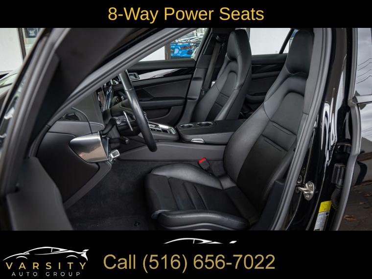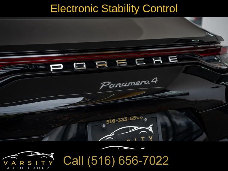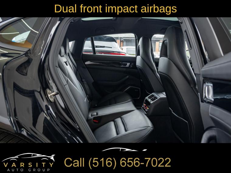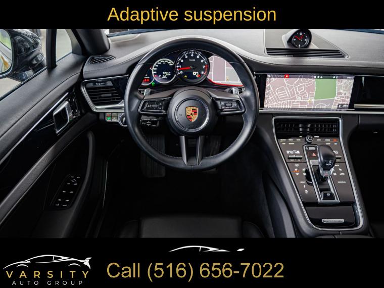 Navigation System, 10 Speakers, AM/FM radio: SiriusXM, Radio data system, Air Conditioning, Automatic temperature control, Front dual zone A/C, Rear window defroster, 8-Way Power Seats, Memory seat, Porsche Communication Management, Power driver seat, Power steering, Power windows, Remote keyless entry, Steering wheel mounted audio controls, Adaptive suspension, Four wheel independent suspension, Traction control, 4-Wheel Disc Brakes, ABS brakes, Dual front impact airbags, Dual front side impact airbags, Front anti-roll bar, Knee airbag, Low tire pressure warning, Occupant sensing airbag, Overhead airbag, Rear anti-roll bar, Rear side impact airbag, Power moonroof, Power Liftgate, Brake assist, Electronic Stability Control, Exterior Parking Camera Rear, Delay-off headlights, Fully automatic headlights, Rear fog lights, Panic alarm, Security system, Speed control, Auto-dimming door mirrors, Bumpers: body-color, Heated door mirrors, Power door mirrors, Spoiler, Apple CarPlay, Auto-dimming Rear-View mirror, Compass, Driver door bin, Driver vanity mirror, Front reading lights, Garage door transmitter: HomeLink, Illuminated entry, Leather Shift Knob, Leather steering wheel, Outside temperature display, Overhead console, Passenger vanity mirror, Rear reading lights, Rear seat center armrest, Tachometer, Telescoping steering wheel, Tilt steering wheel, Trip computer, Front Bucket Seats, Front Center Armrest, Heated front seats, Partial Leather Seat Trim, Power passenger seat, Split folding rear seat, Passenger door bin, Alloy wheels, Wheels: 19" Panamera, Rain sensing wipers, Variably intermittent wipers